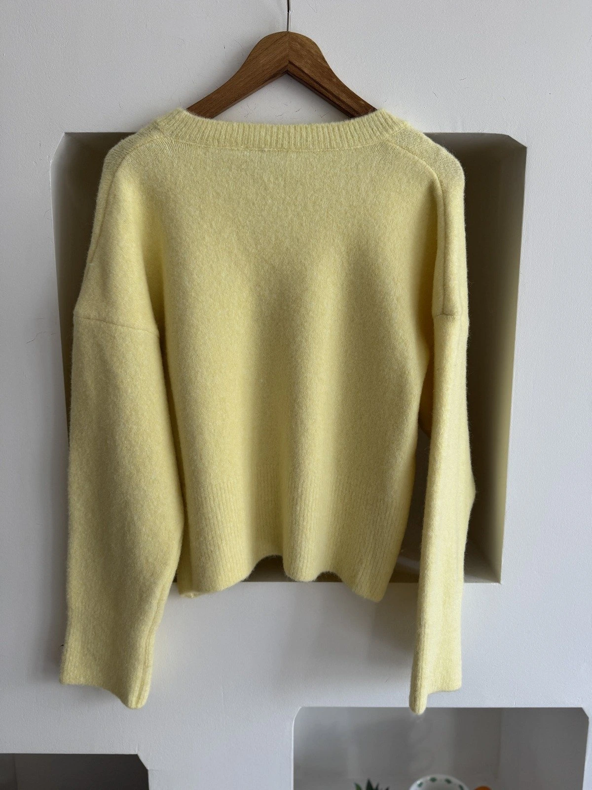 V YAKA YUMUŞAK DOKU YÜN KARIŞIMLI DÜŞÜK OMUZ KAZAK – AÇIK SARI