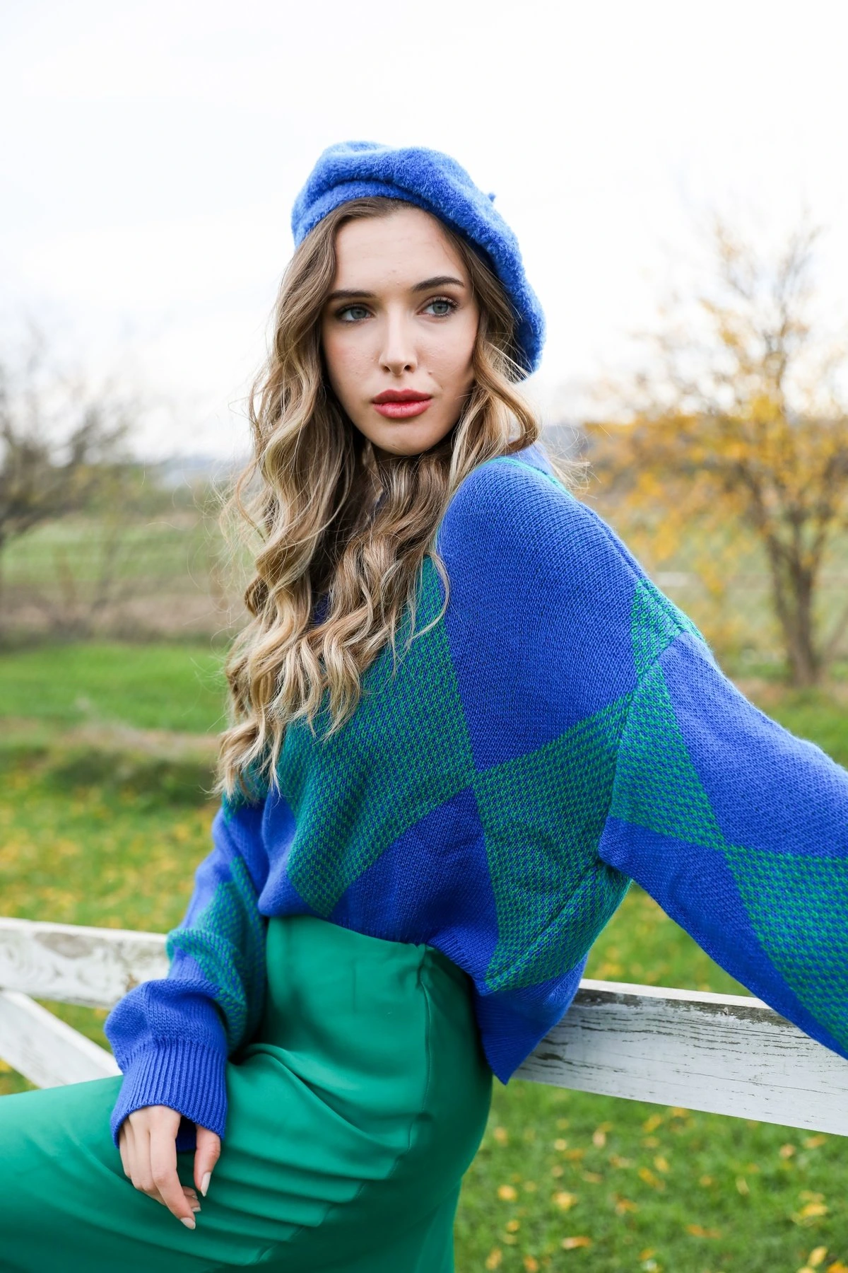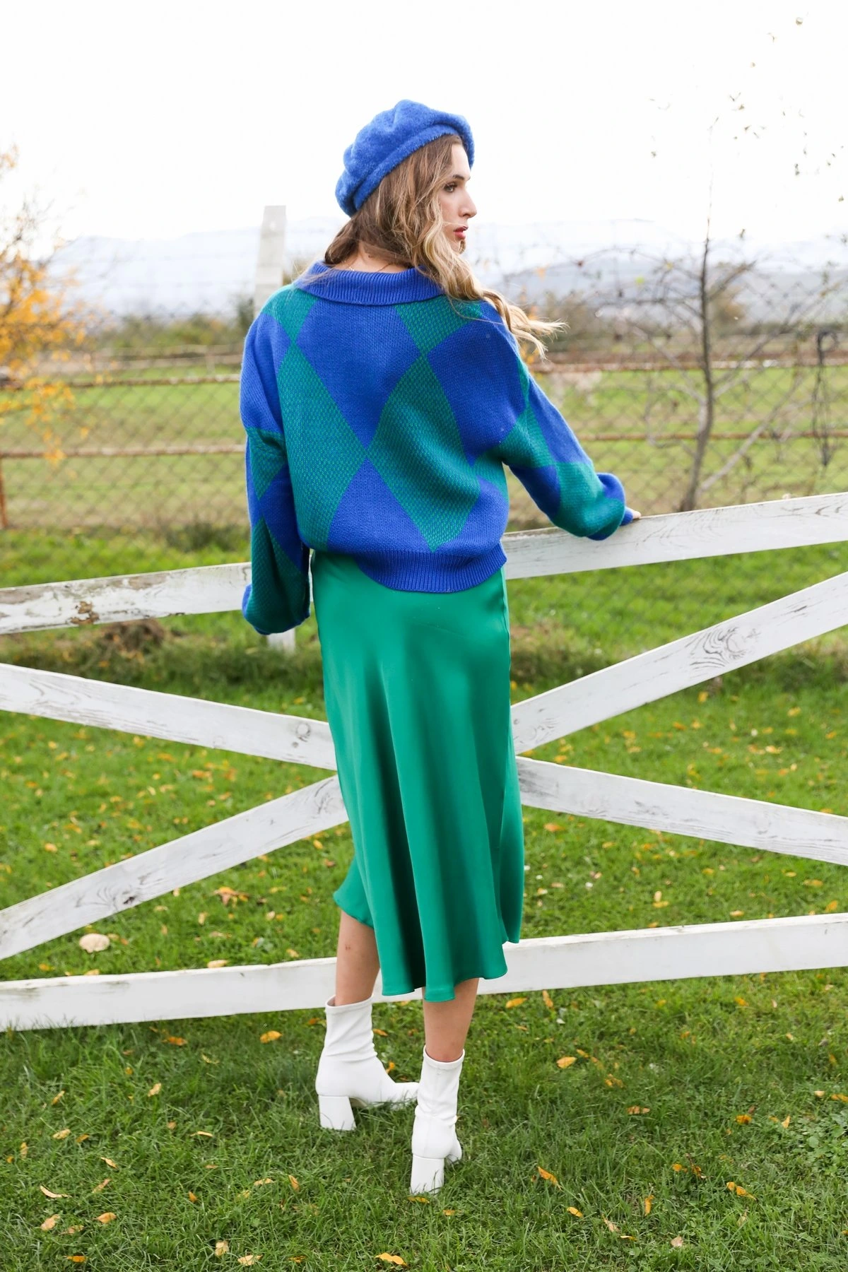 YAKA DÜĞMELİ CROP KAZAK – MAVİ