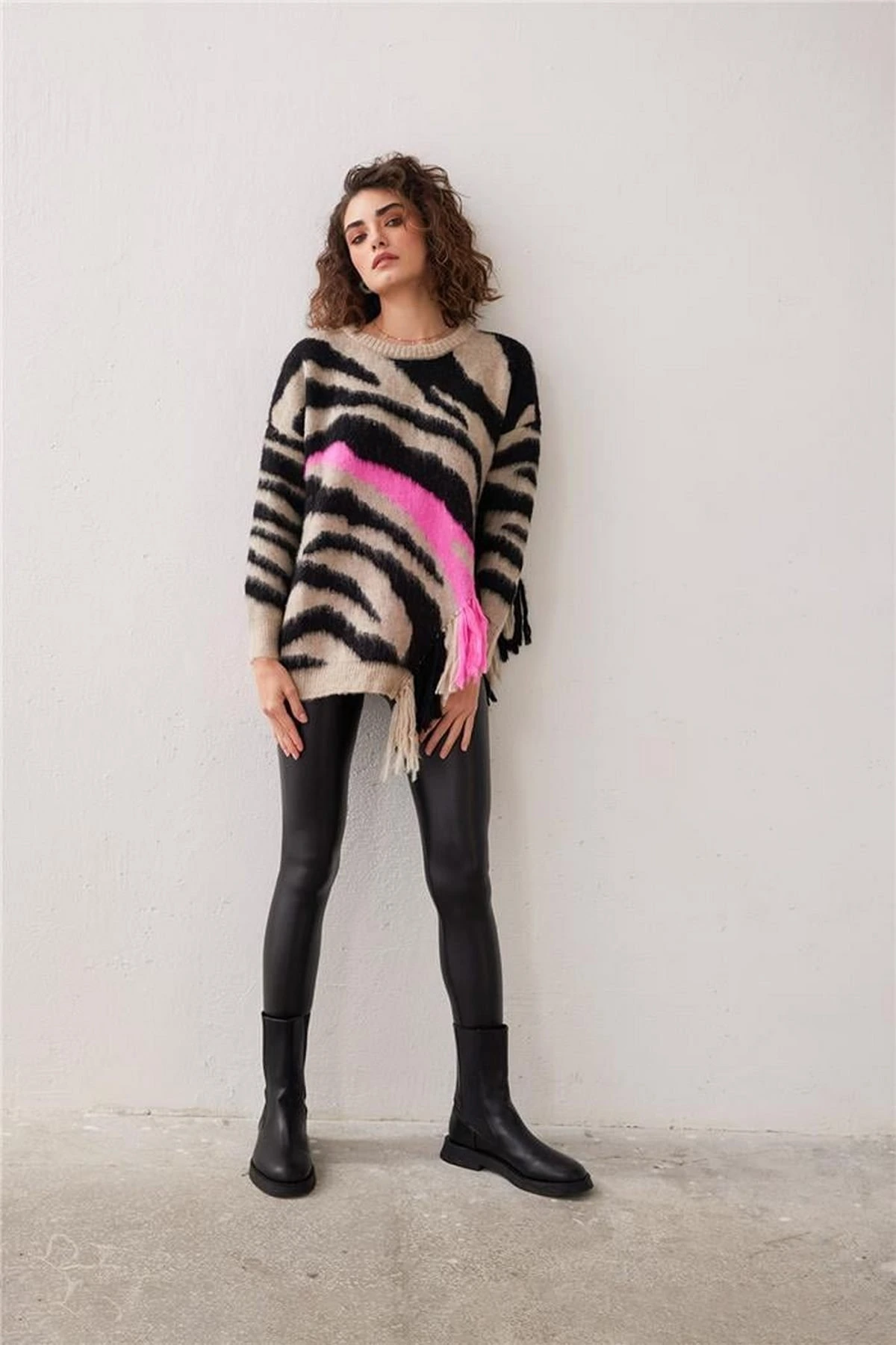 YAN ETEK UCU PÜSKÜL RENK GEÇİŞLİ SALAŞ KAZAK – VİZON