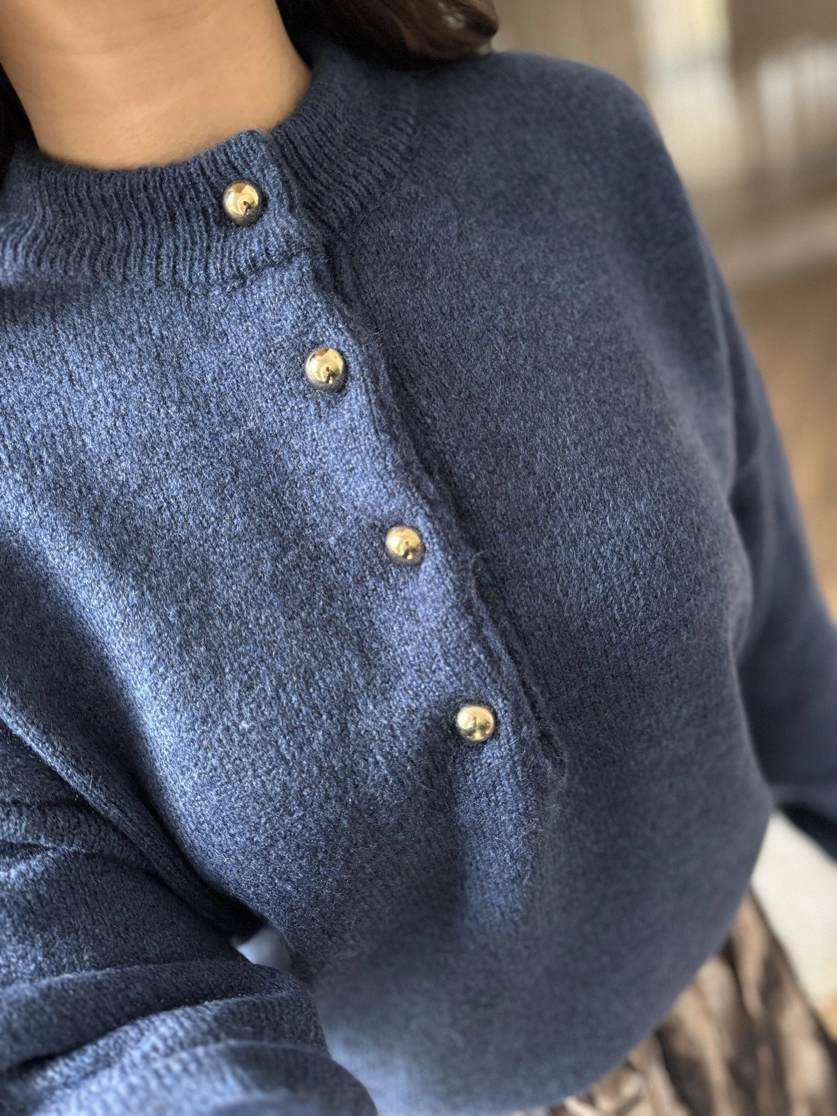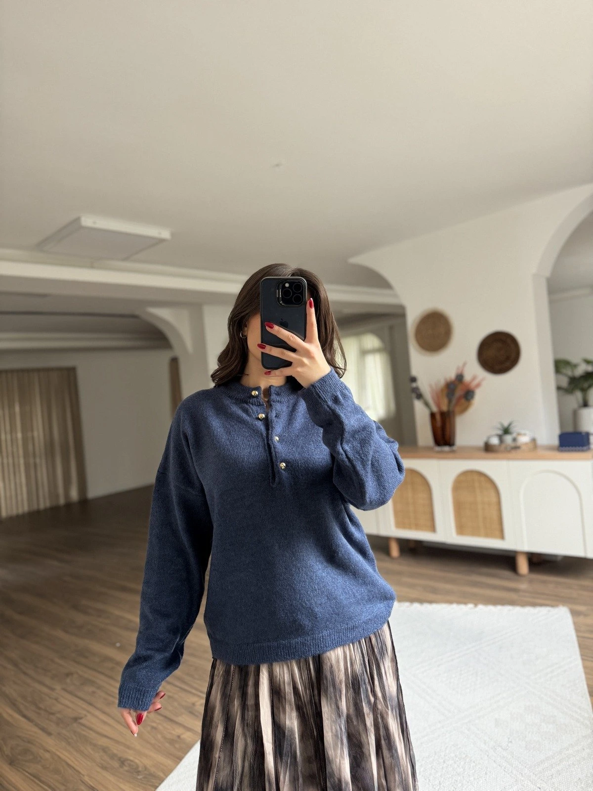 YARI PATLI GOLD DÜĞME BİSİKLET YAKA KAZAK – İNDİGO