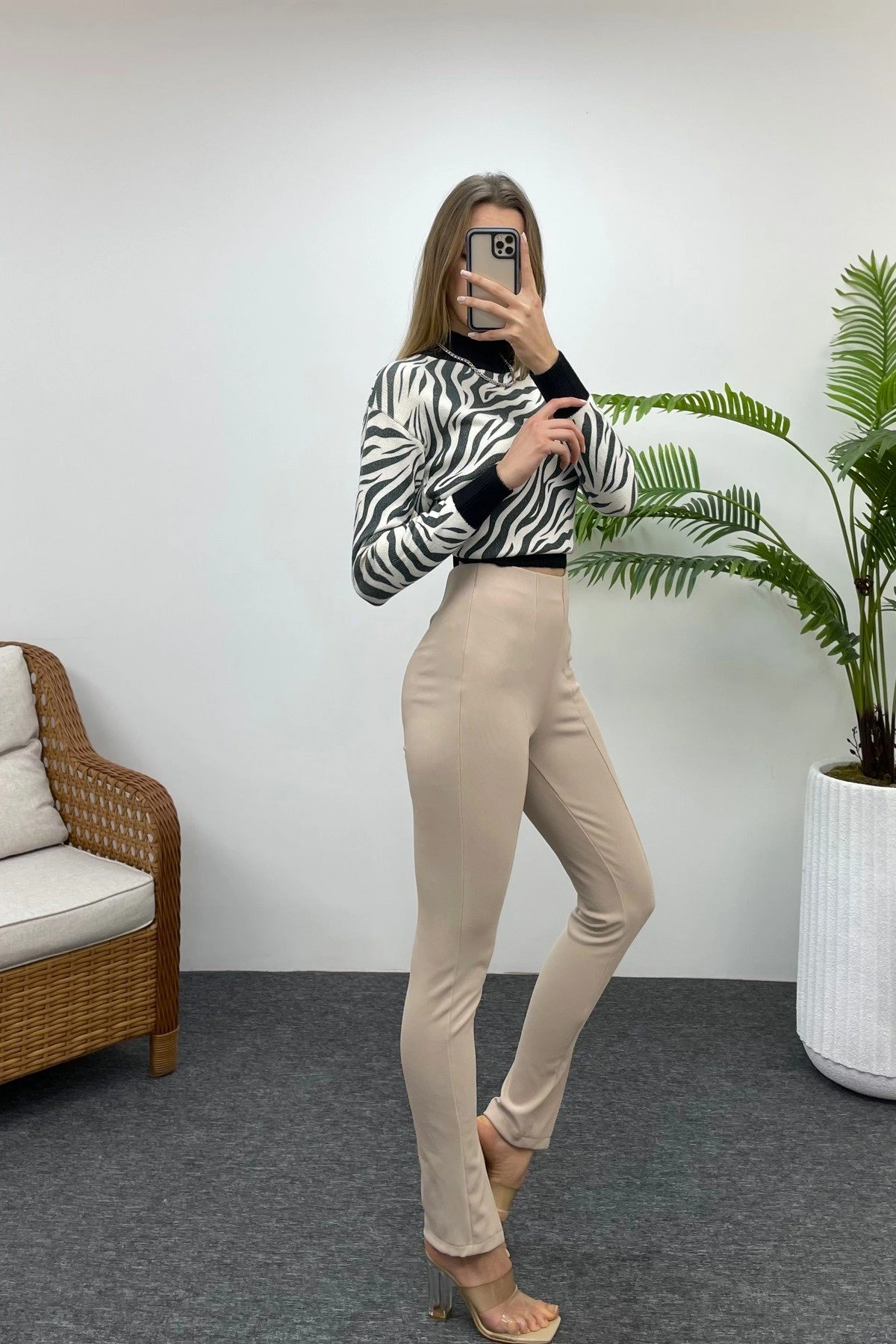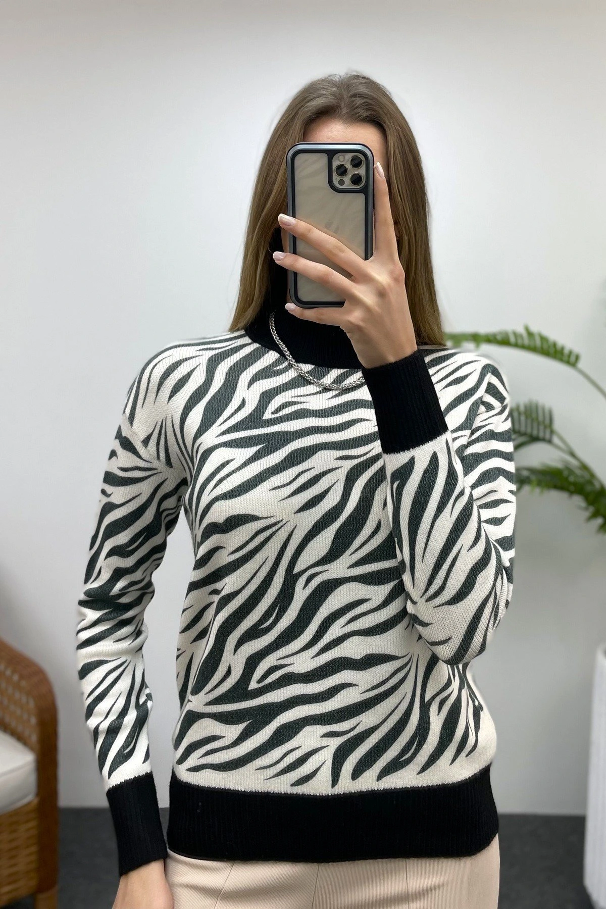 ZEBRA DESEN DİK YAKA KAZAK – HAKİ EKRU