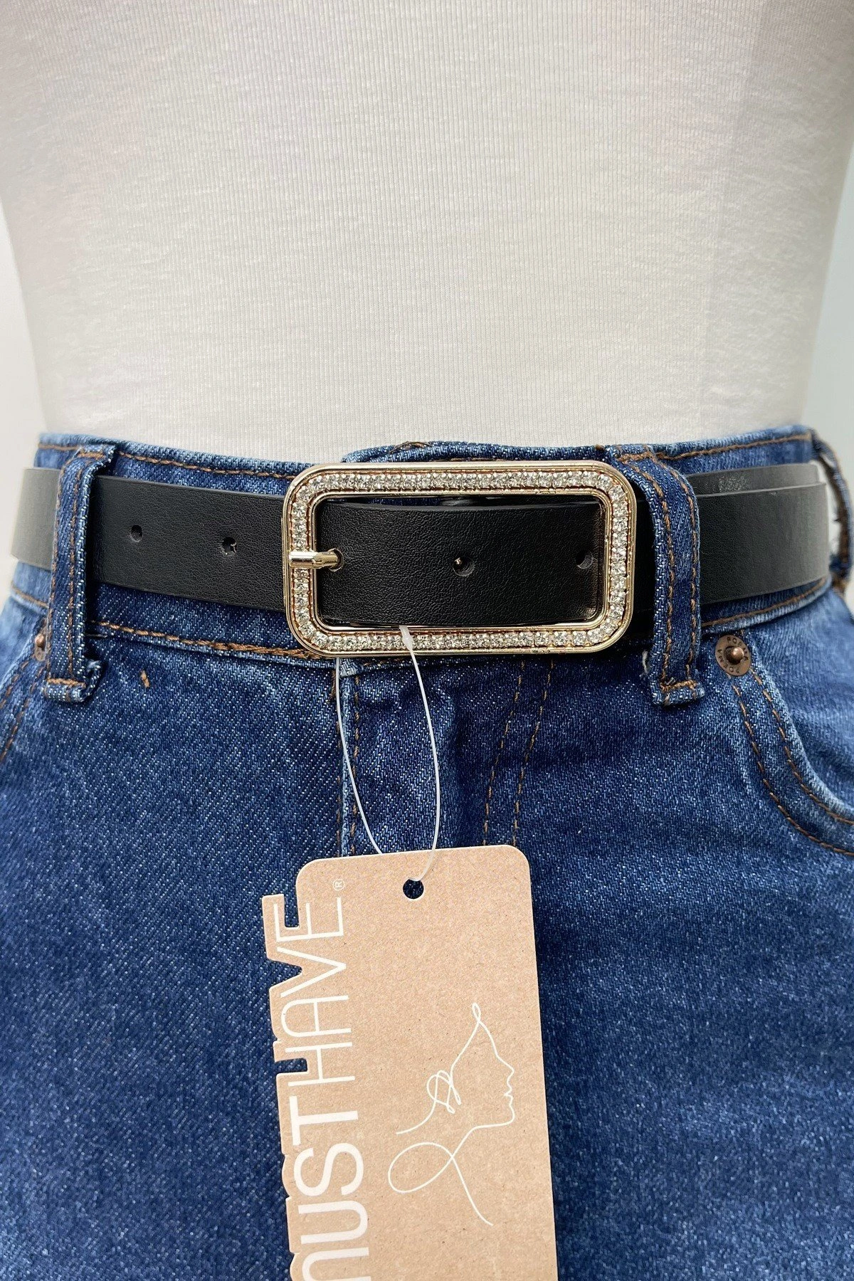 2,5CM DİKDÖRTGEN TAŞLI GOLD TOKA KEMER – SİYAH