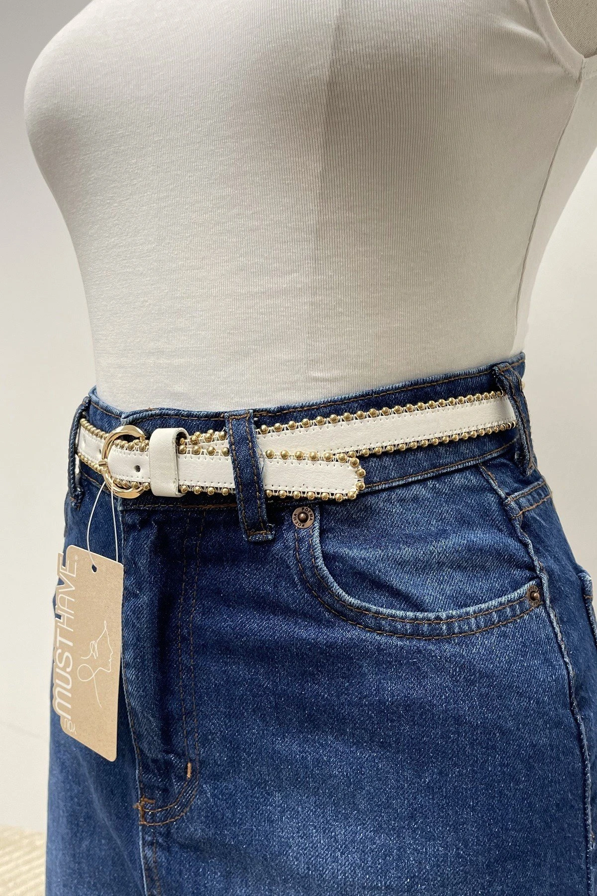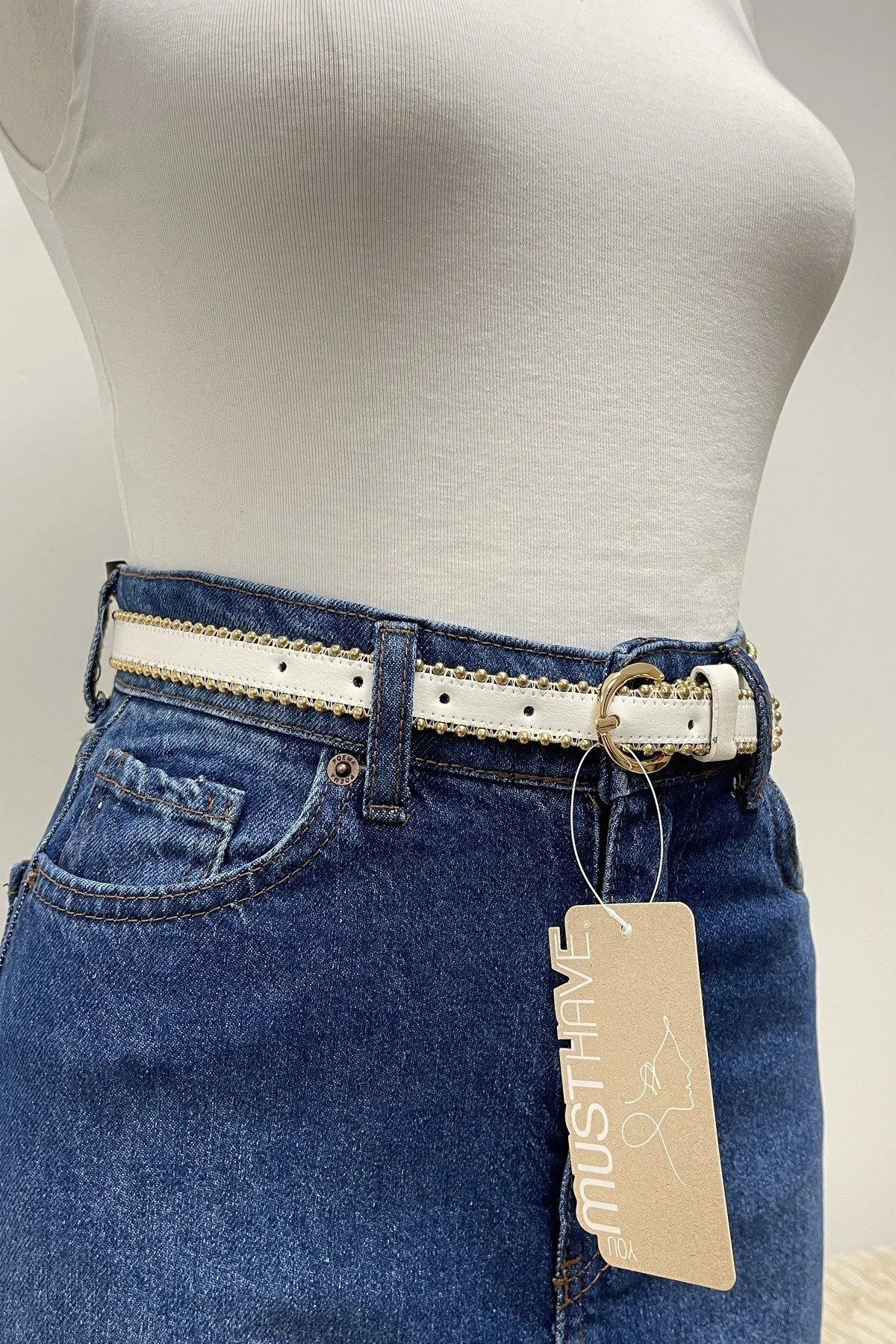 2CM TOP ZİNCİR GOLD TOKA KEMER – BEYAZ