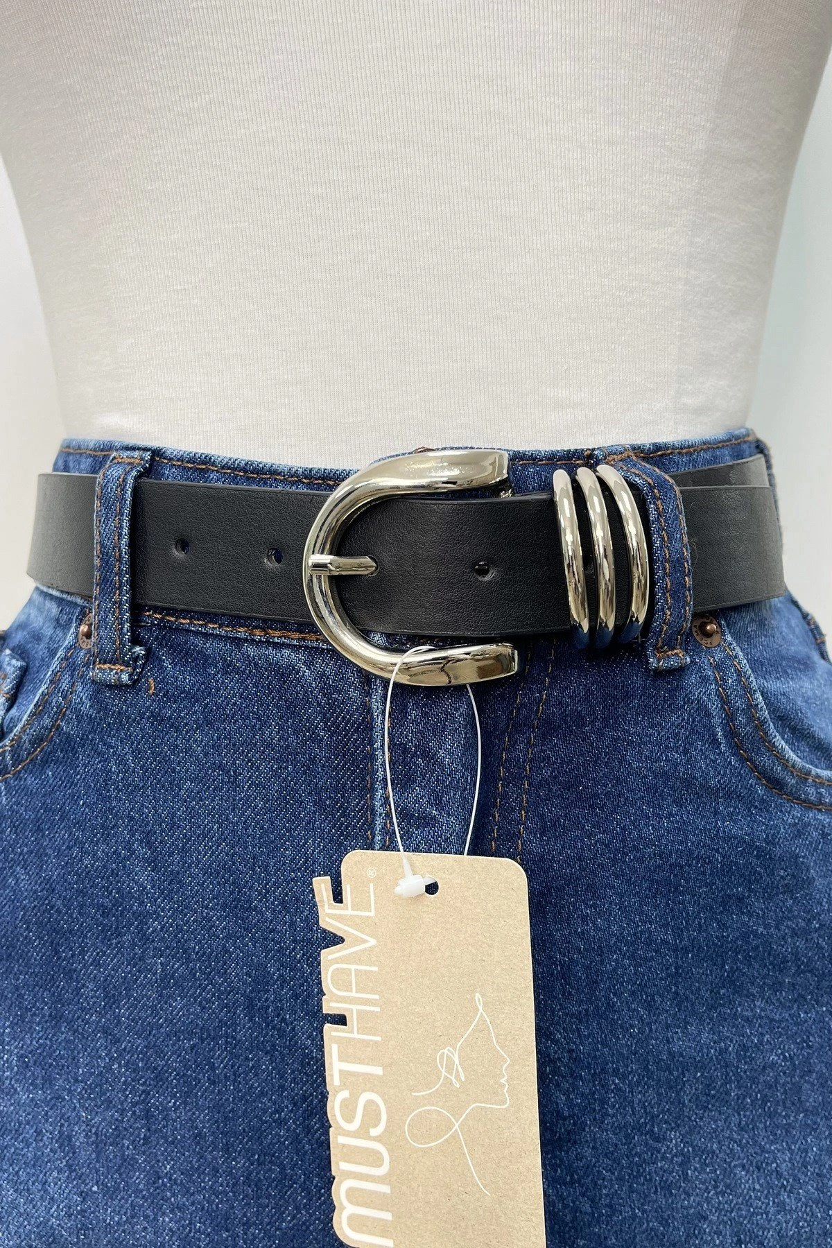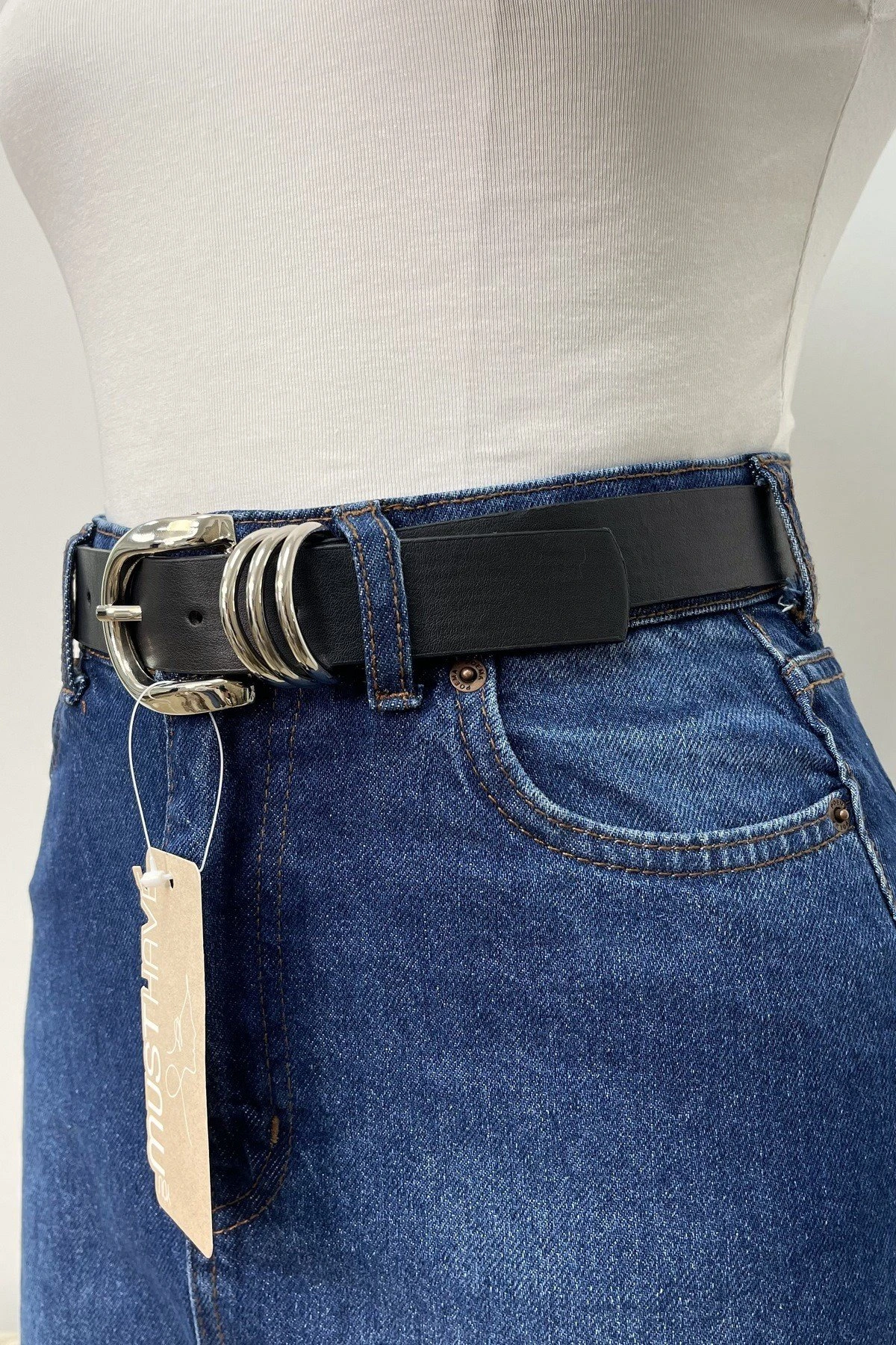3,5 CM ÜÇLÜ KÖPRÜ GÜMÜŞ TOKA KEMER – SİYAH