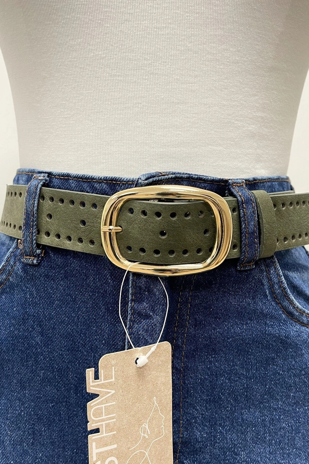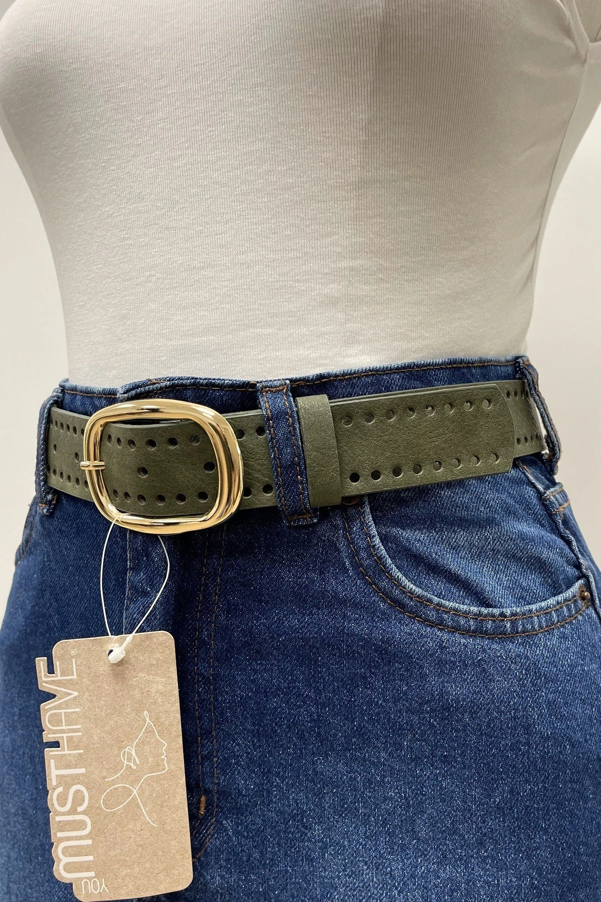 3,5CM ÇİFT DELİKLİ GOLD TOKA KEMER – HAKİ