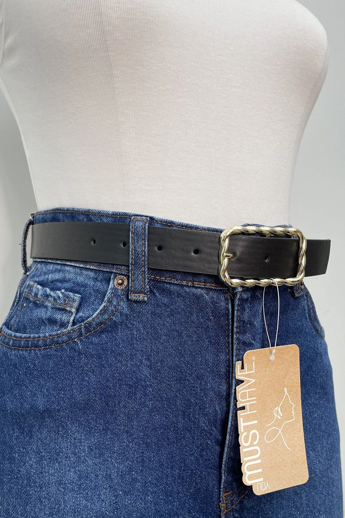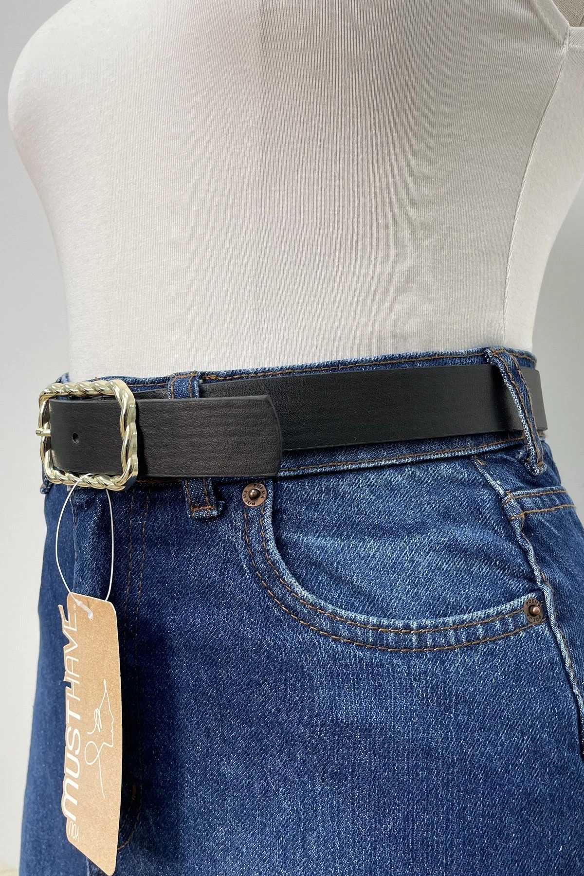 3CM BURGU GOLD RENK TOKA KEMER – SİYAH