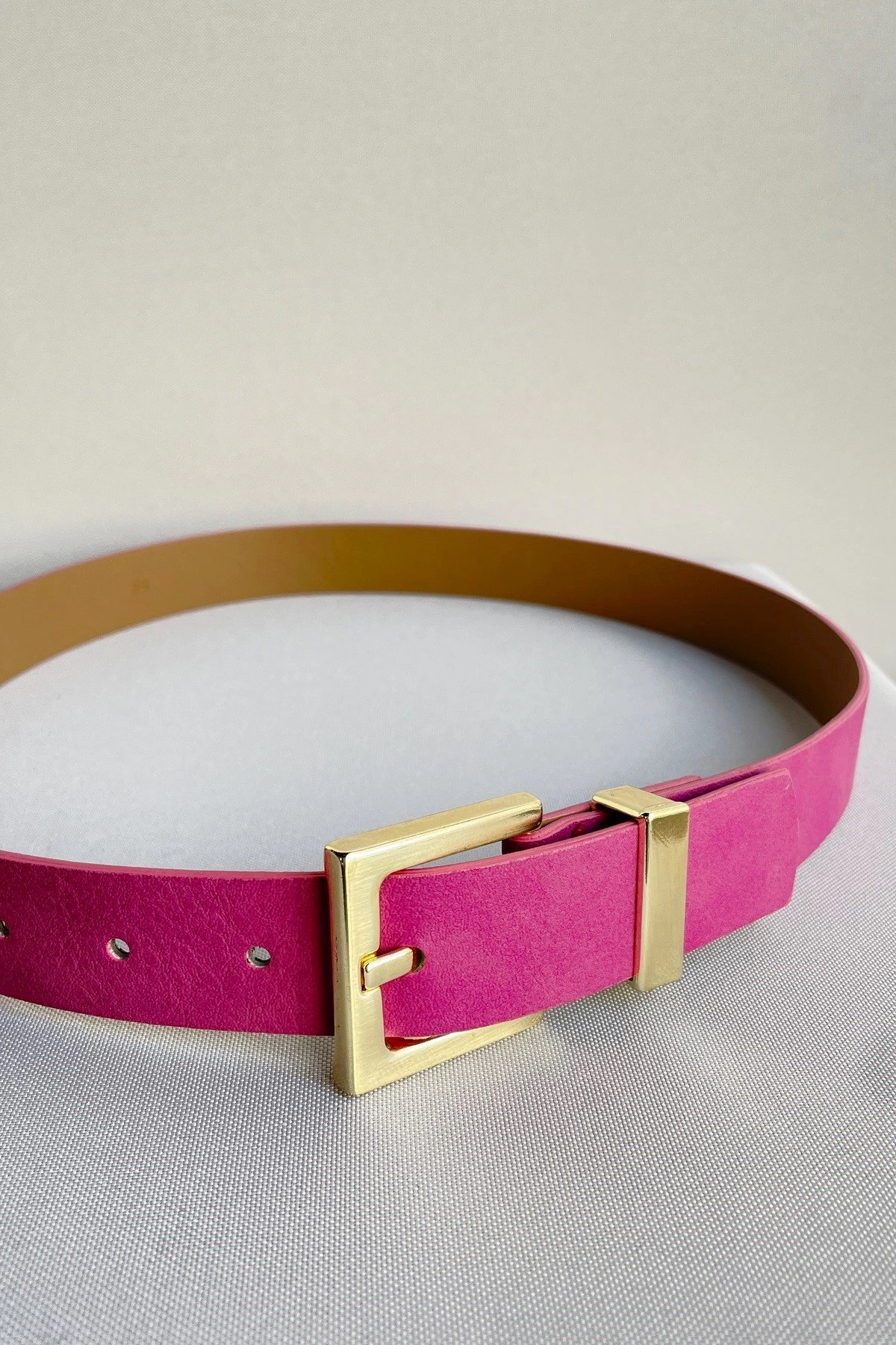 3CM GOLD KARE KÖPRÜLÜ TOKA KEMER – FUŞYA