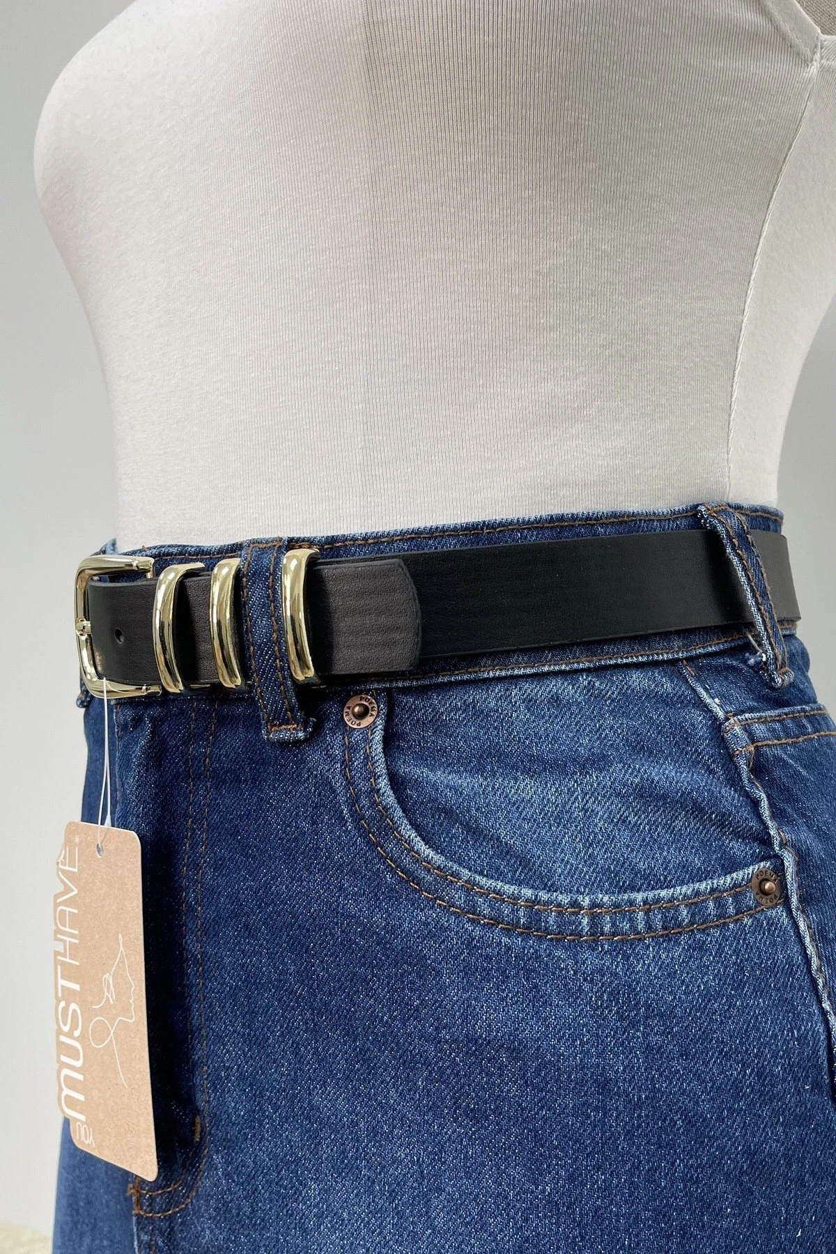 3CM KÖPRÜLÜ GOLD TOKA KEMER – SİYAH