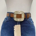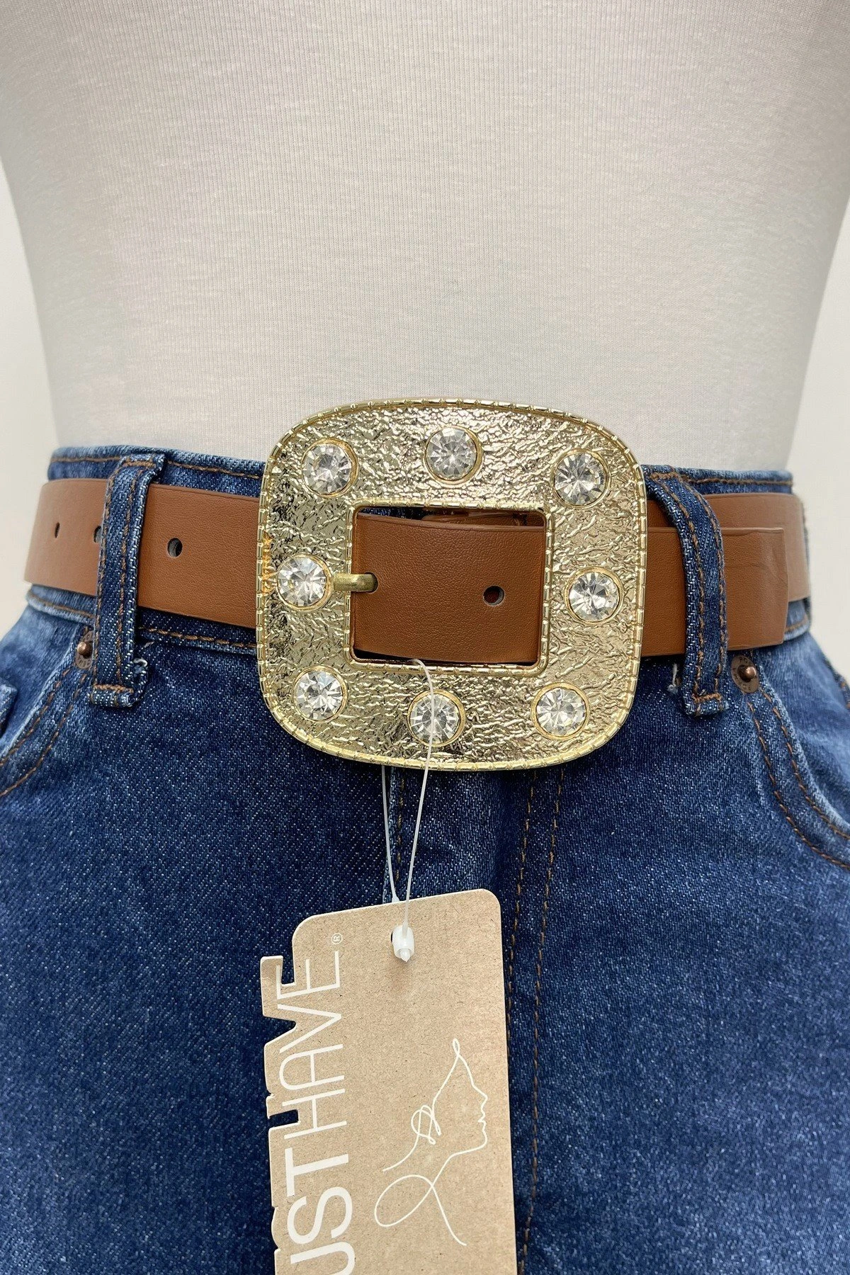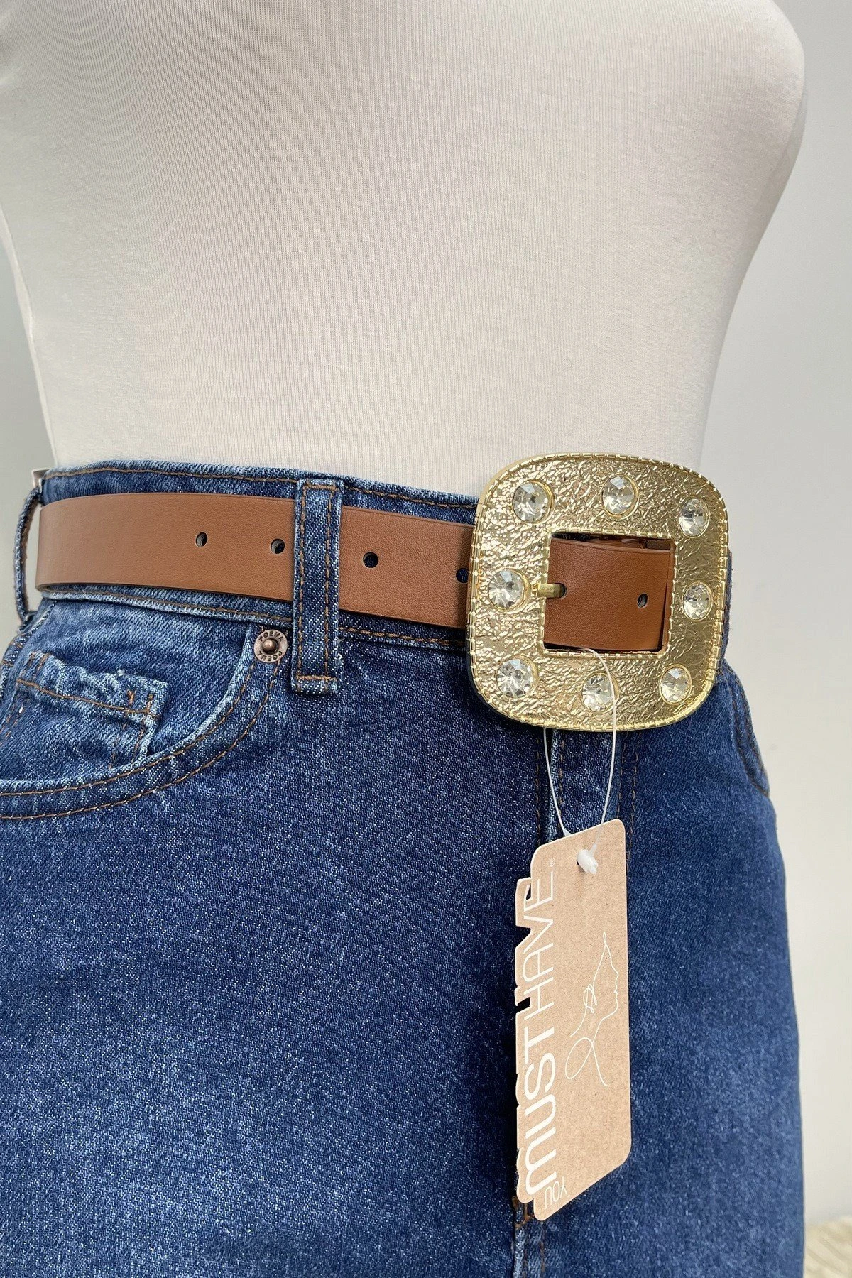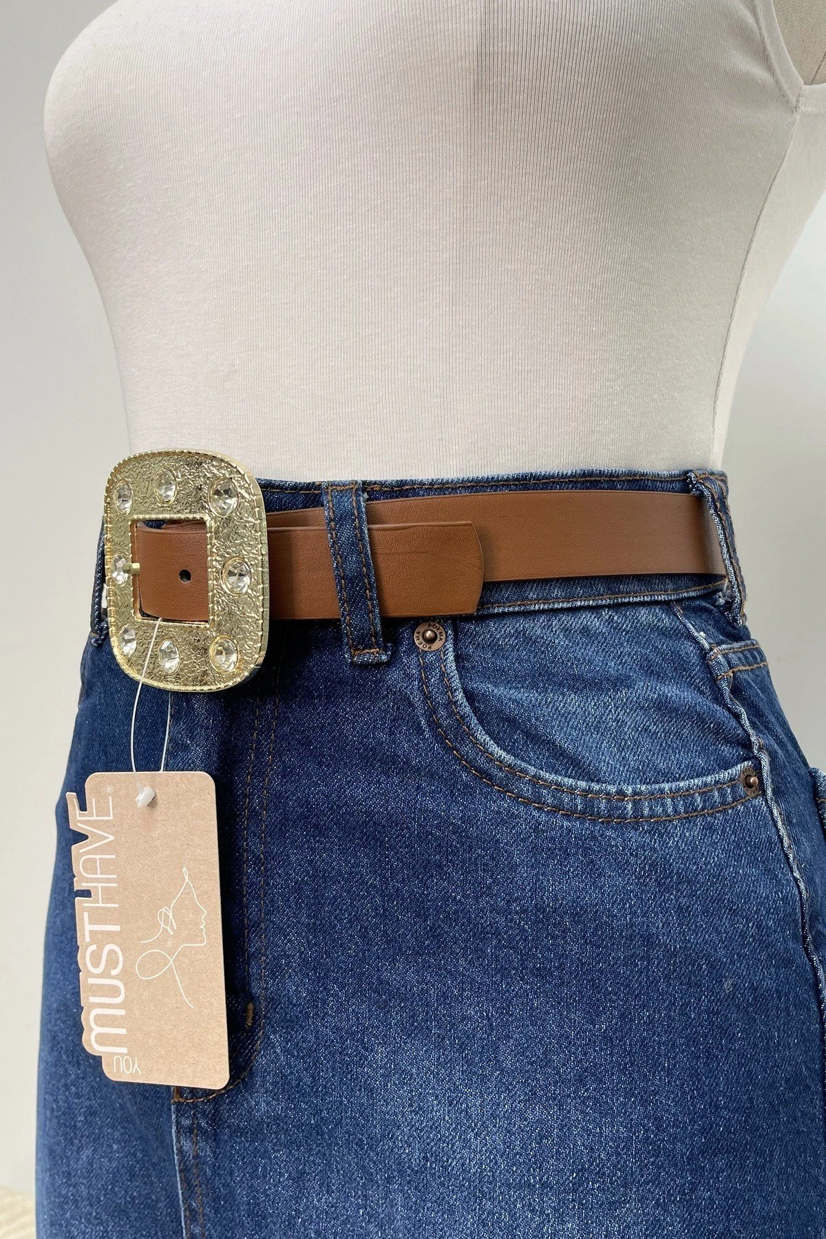 3CM TAŞLI KARE GOLD TOKA KEMER – TABA