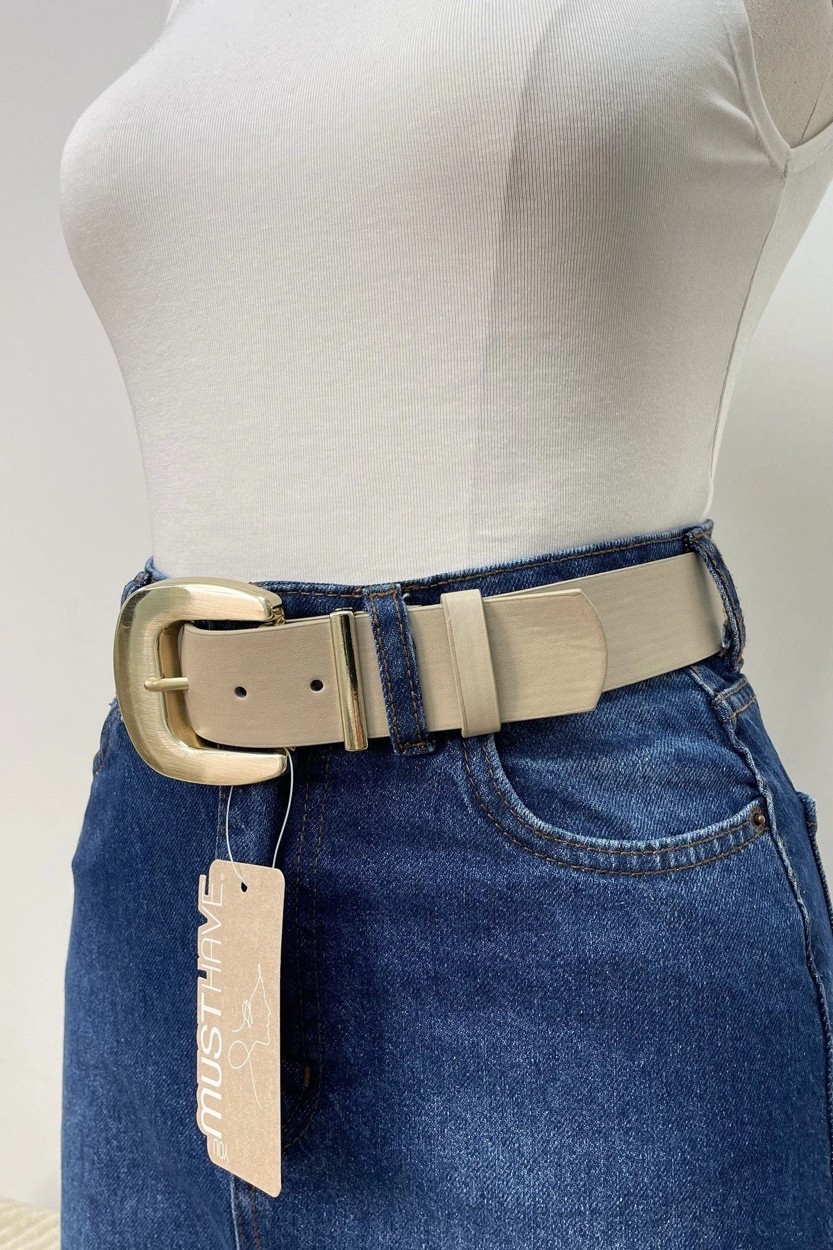 4CM KÖPRÜLÜ GENİŞ GOLD TOKA KEMER – BEJ