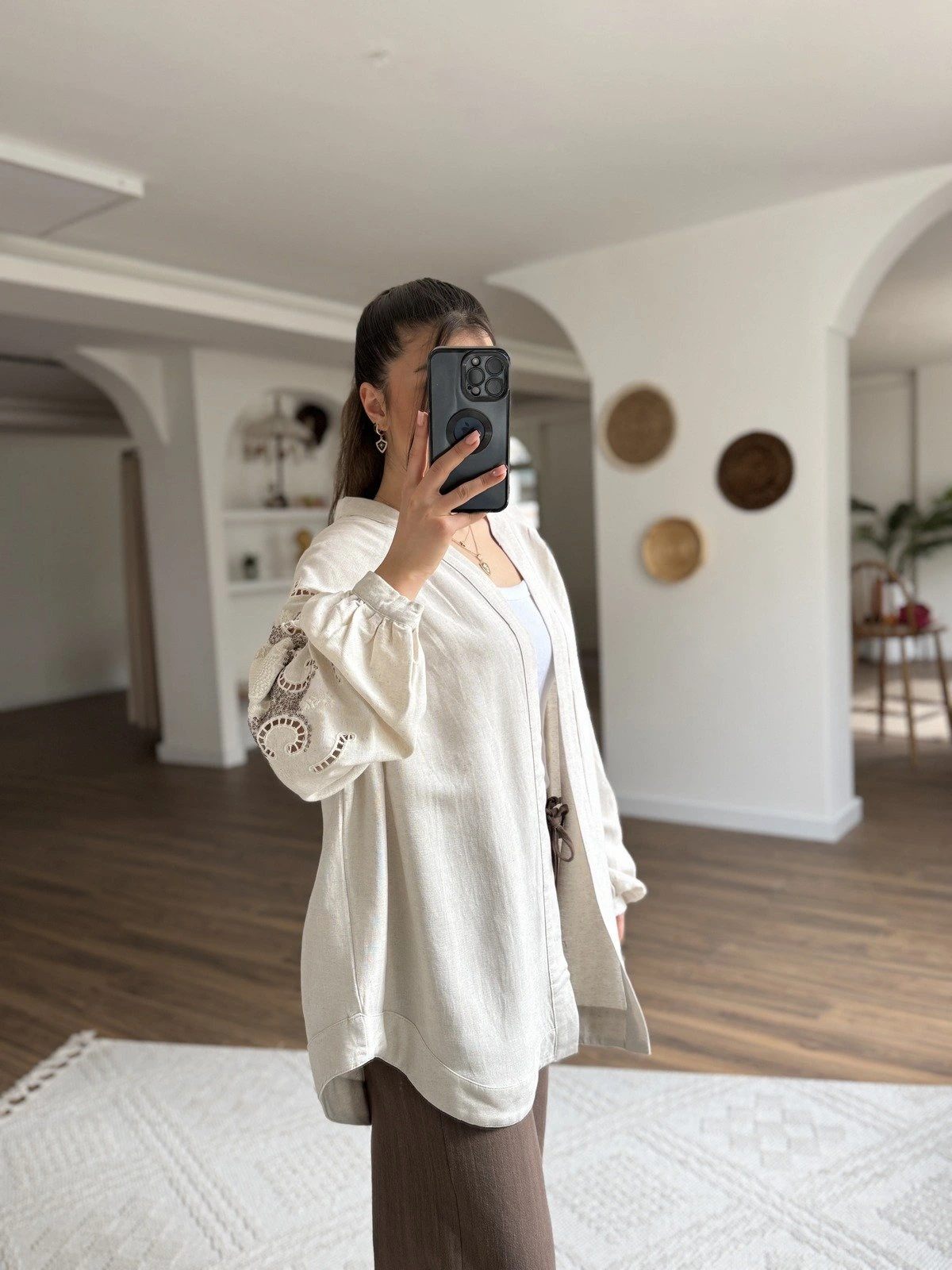 31603 ARKA KOL PUL NAKIŞ İŞLEME VİSKON KETEN KİMONO – NATUREL