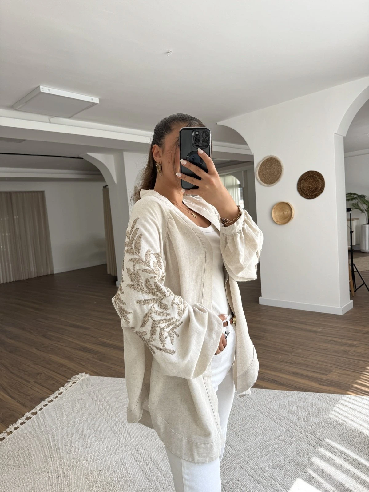 ARKA VE KOL İŞLEME VİSKON KETEN SALAŞ KİMONO – NATUREL
