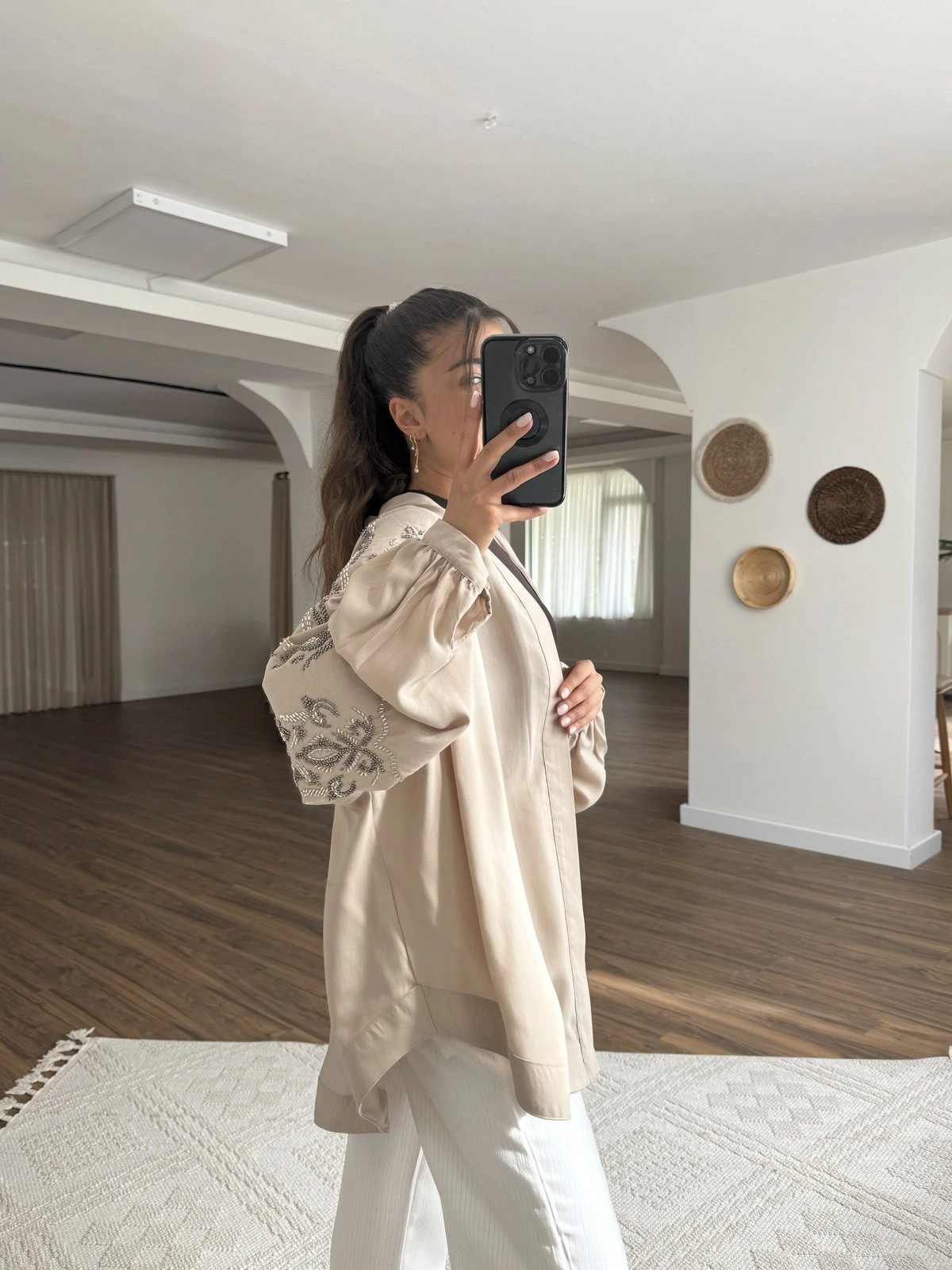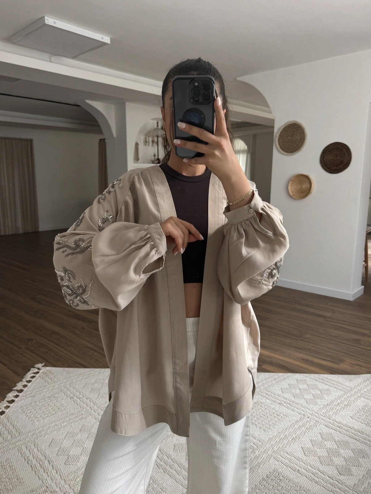 BONCUK İŞLEME SALAŞ TENSEL KİMONO – BEJ