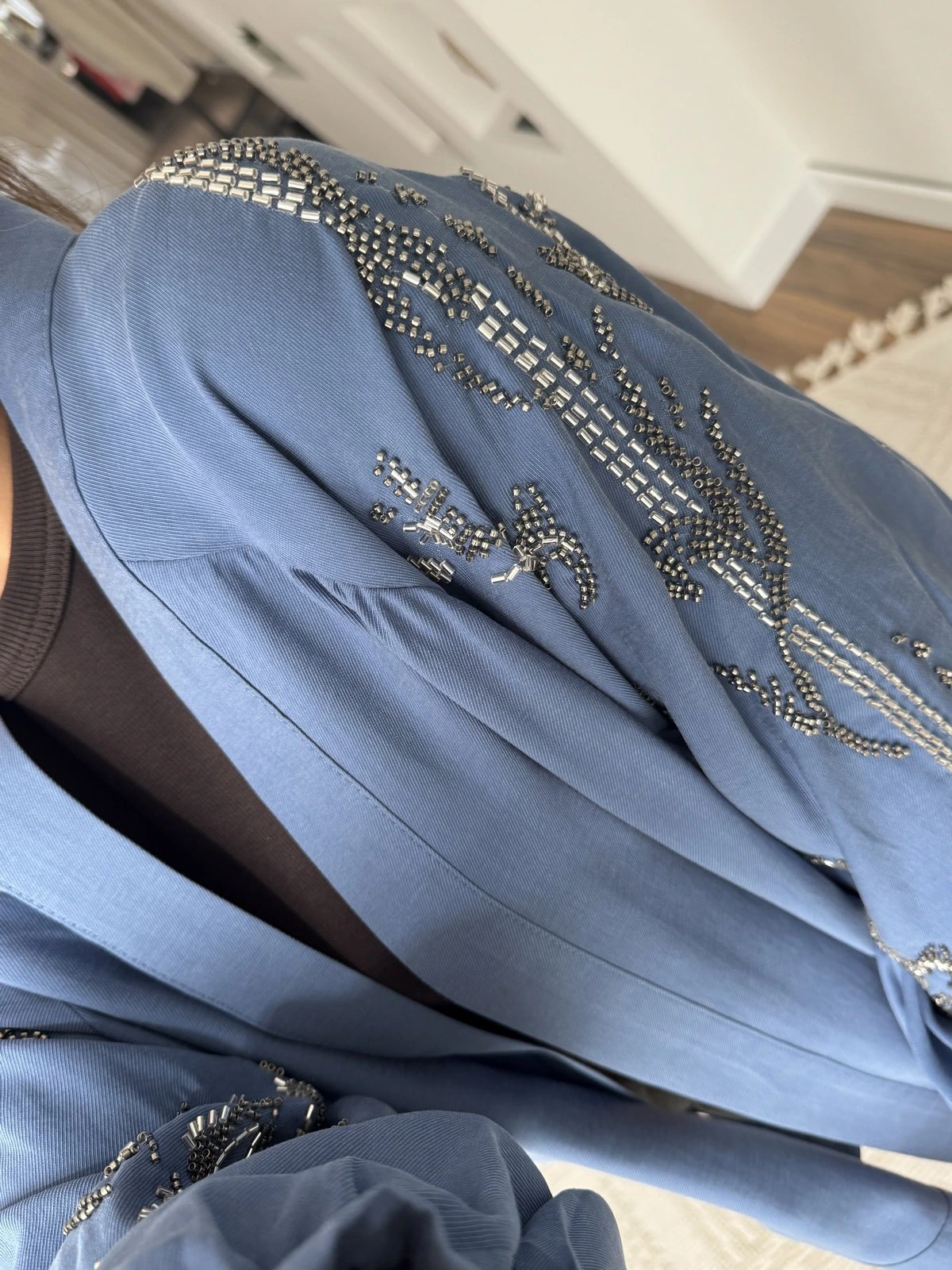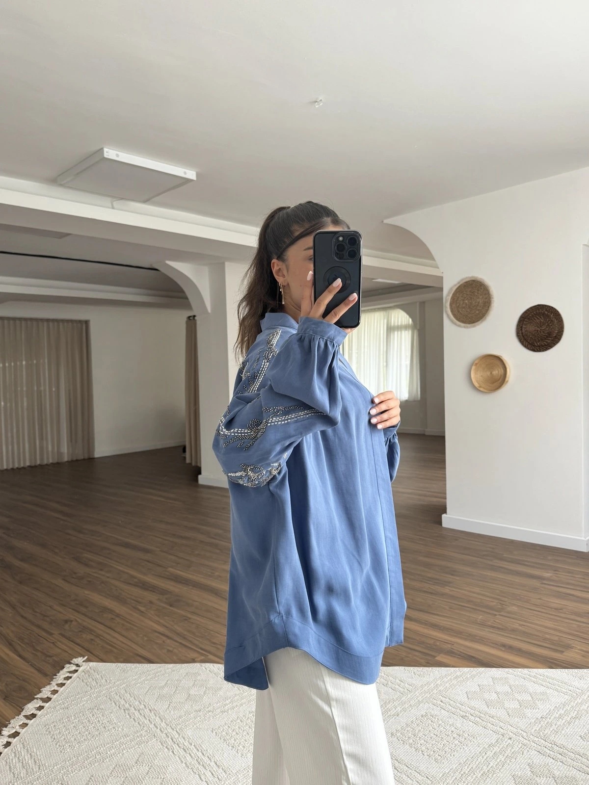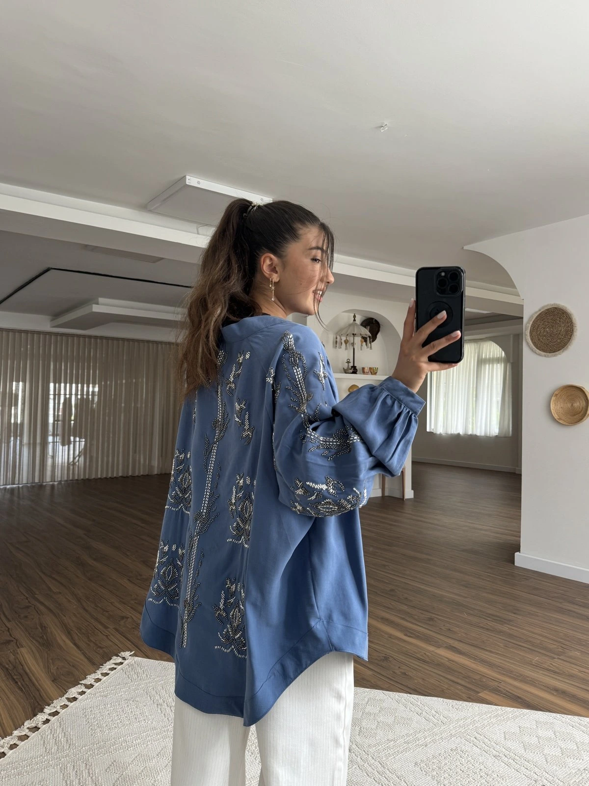 BONCUK İŞLEME SALAŞ TENSEL KİMONO – İNDİGO