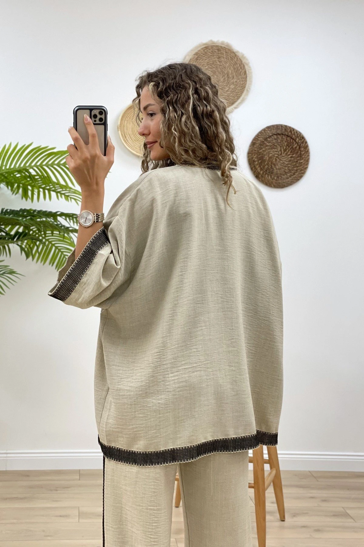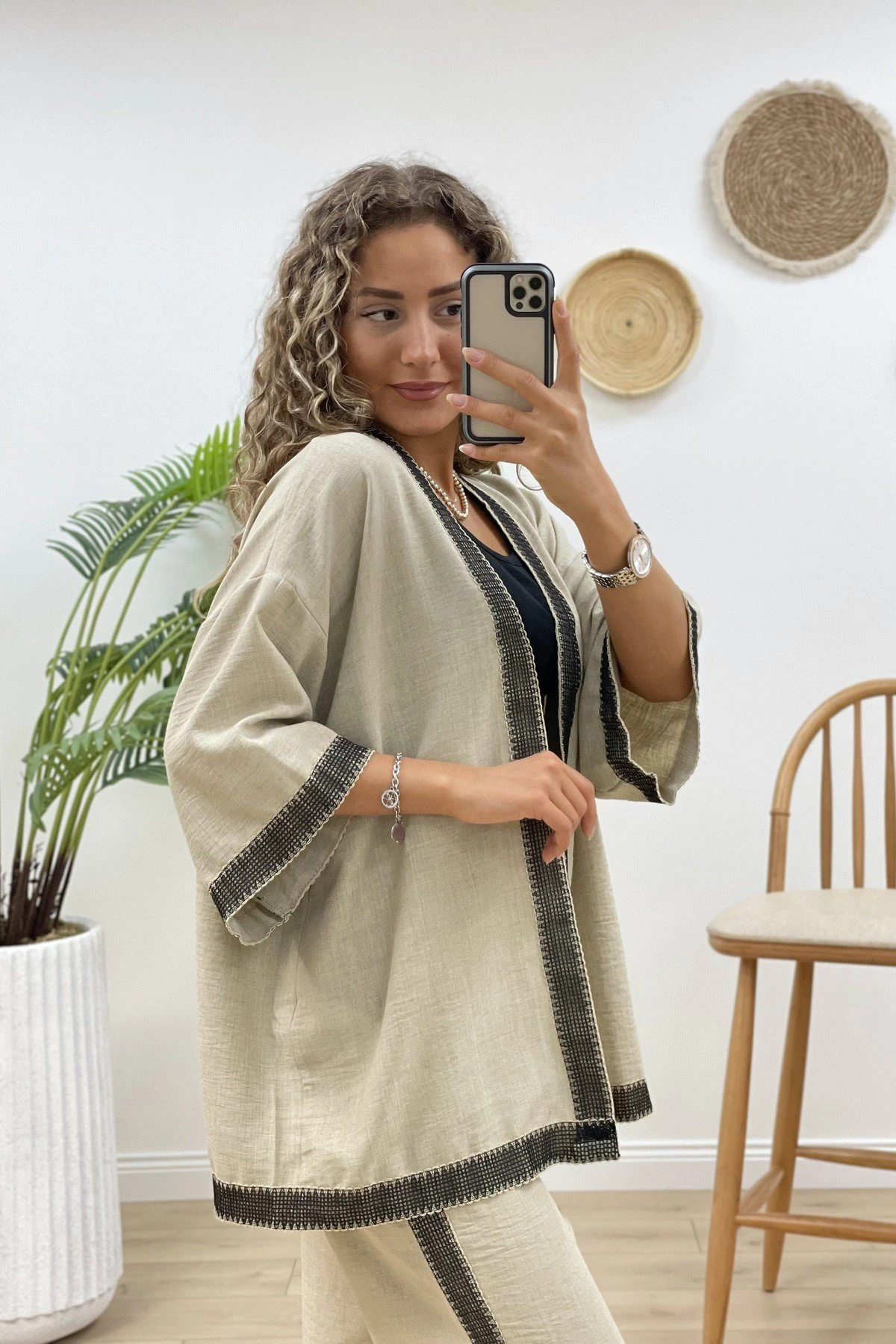 KENAR FİLE DETAY KİMONO – TAŞ