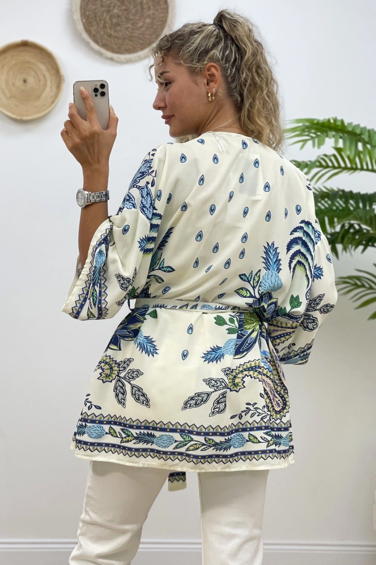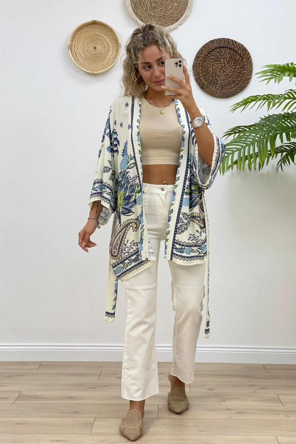 PALMİYE DESEN VİSKON KİMONO – KEMİK