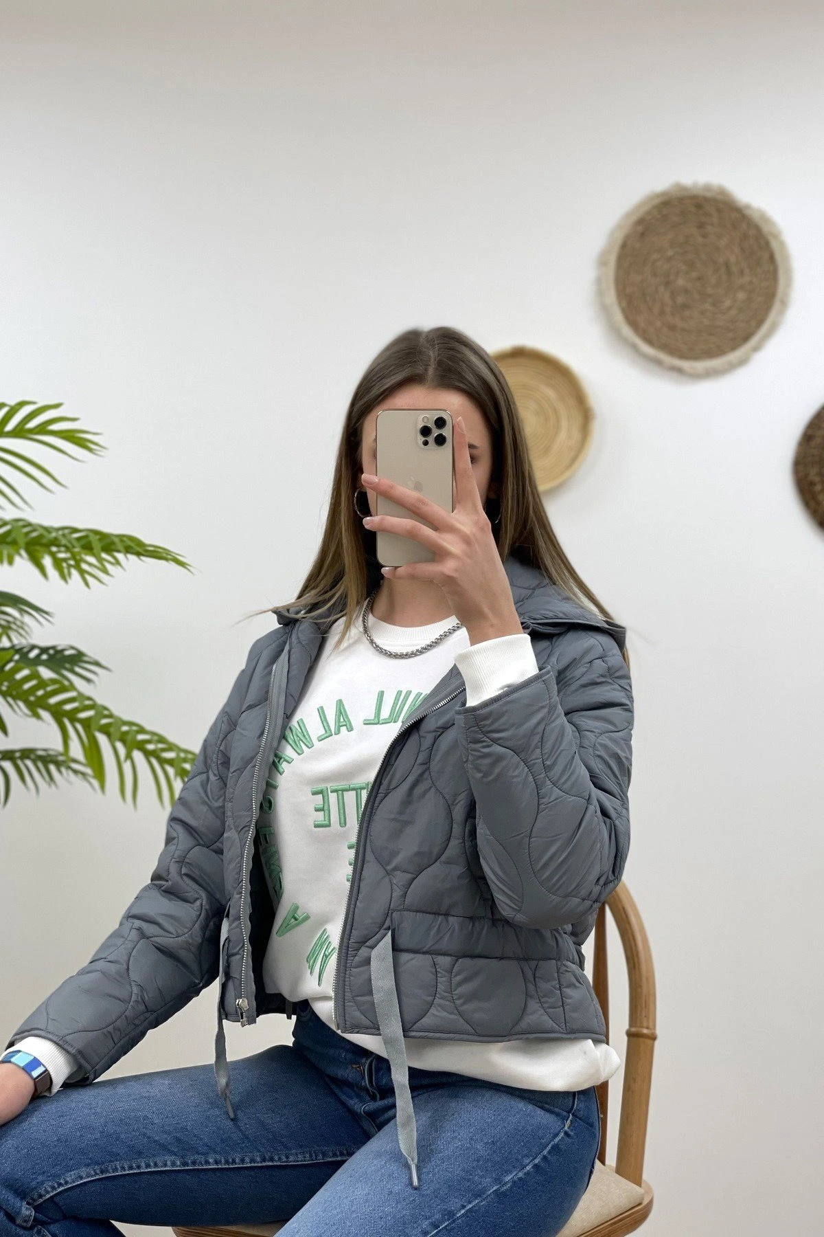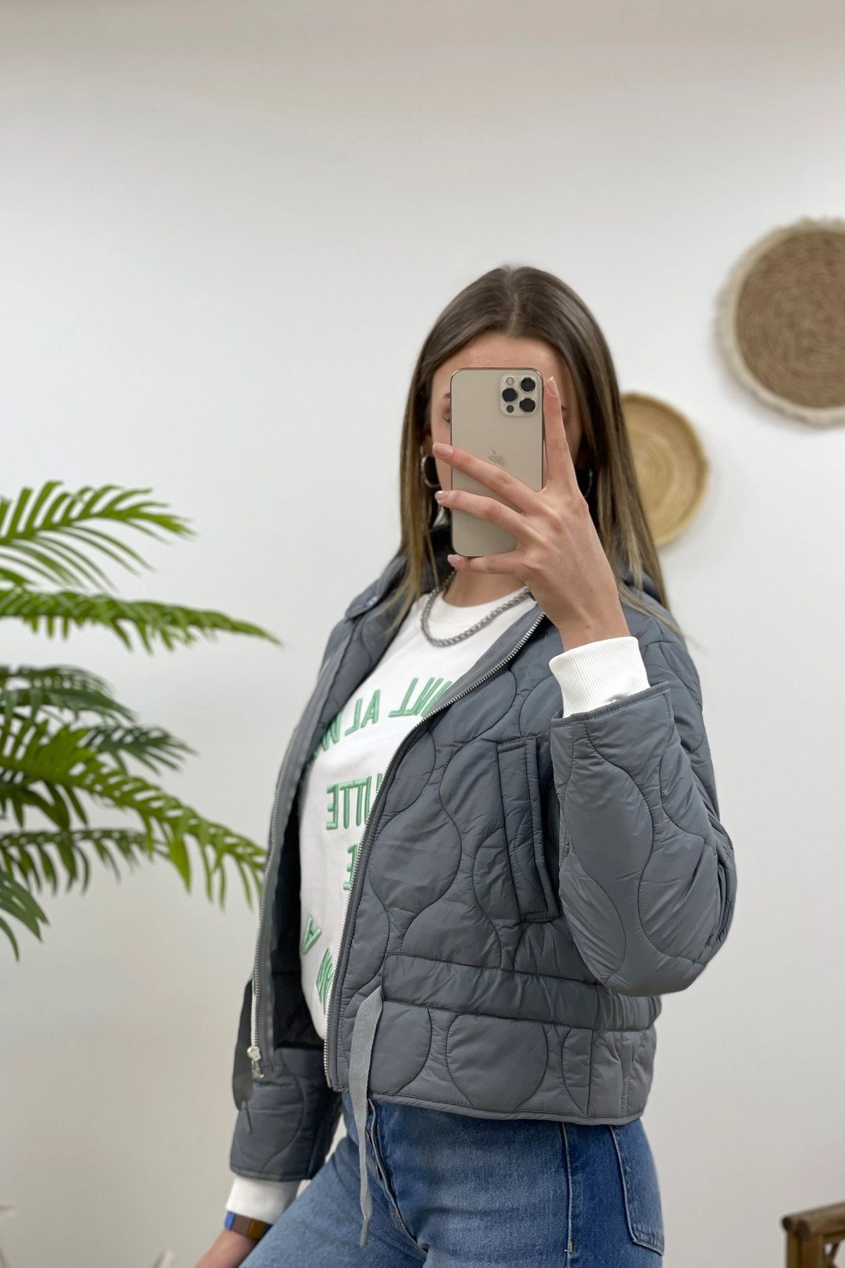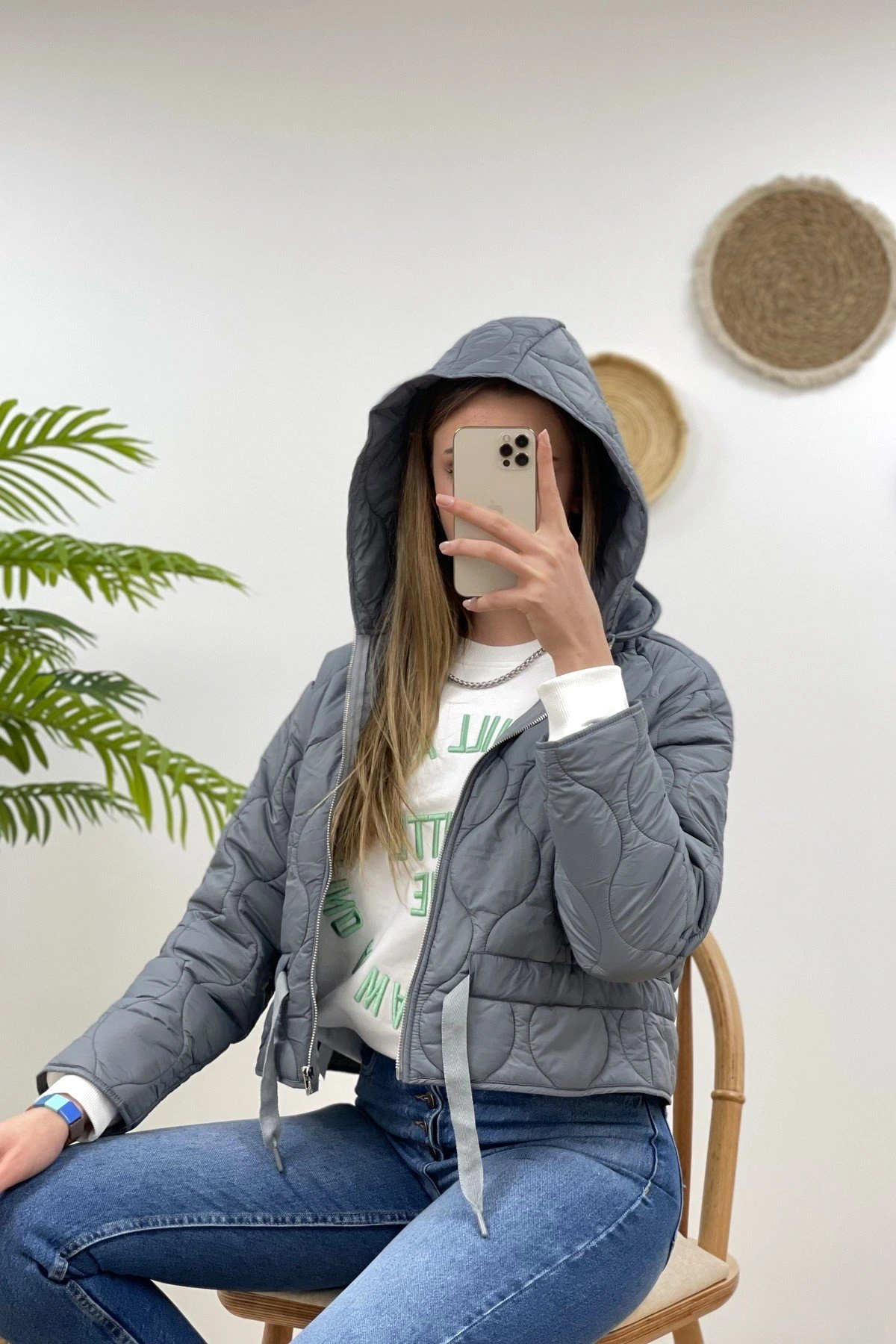 BİYELİ KISA KAPİTONE MONT – GRİ