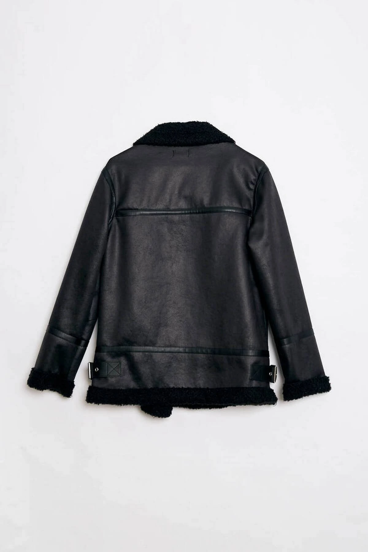 DERİ BİYELİ İÇİ PELUŞ KEMER DETAY NUBUK BİKER MONT – SİYAH
