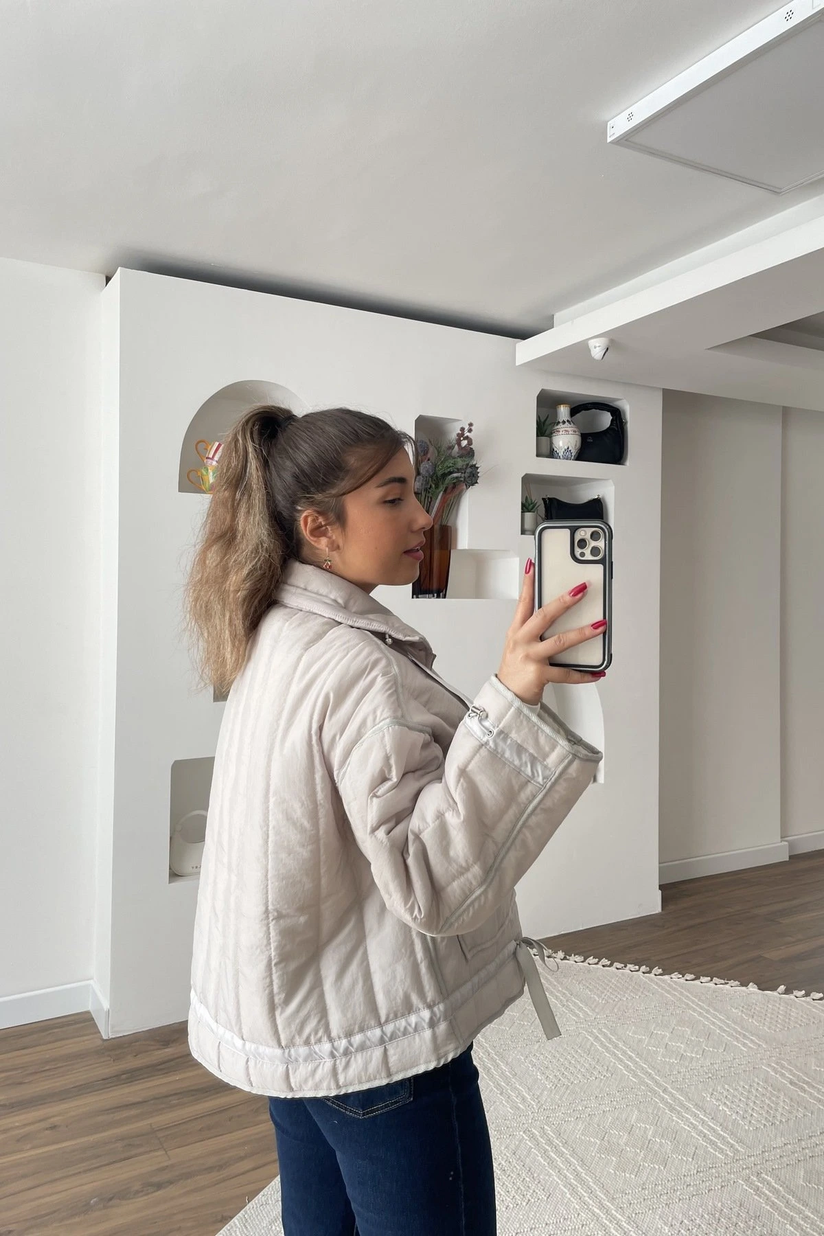 DİK YAKA BEL VE KOL BÜZGÜ MONT – TAŞ