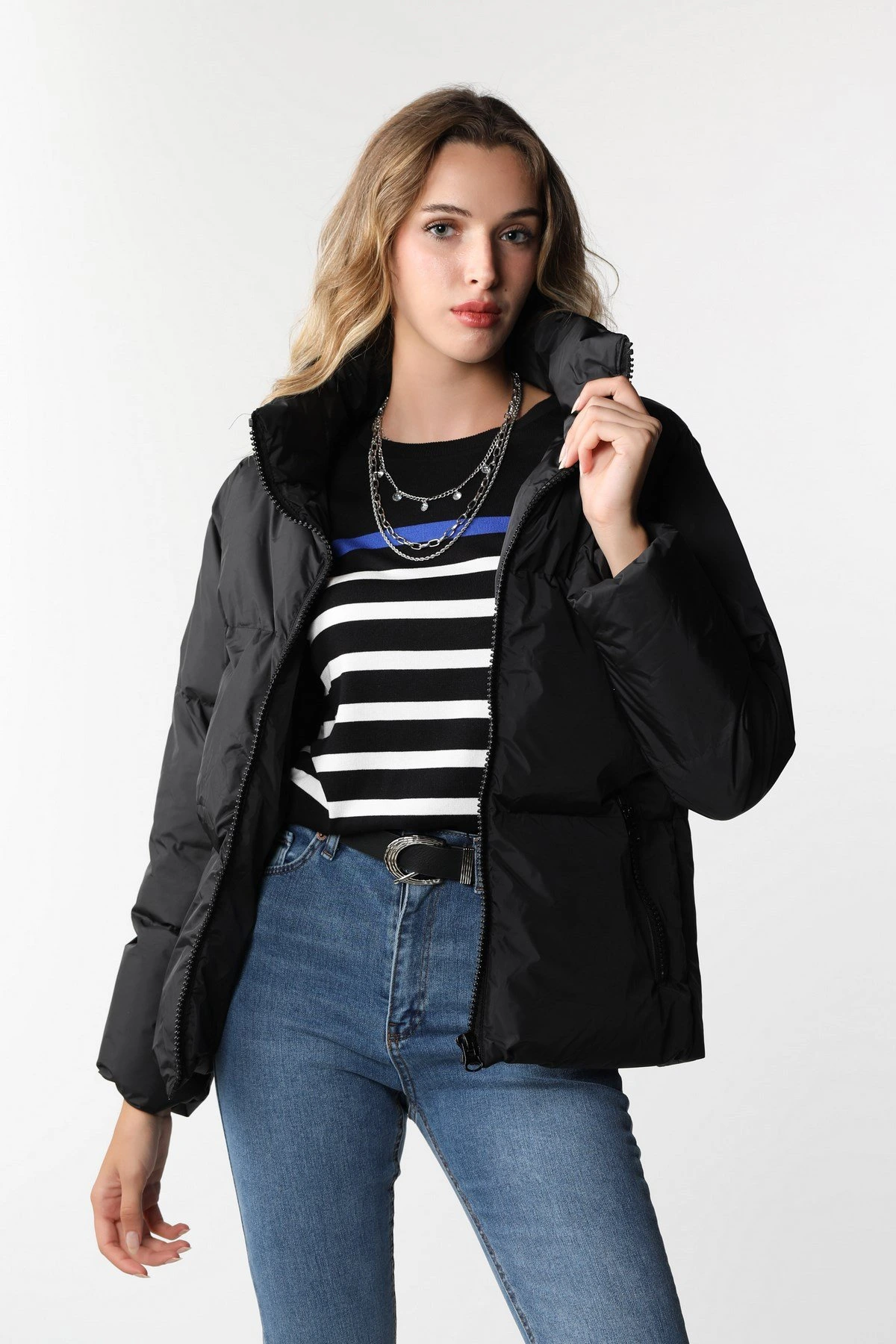 DİK YAKA ŞİŞME MONT – SİYAH