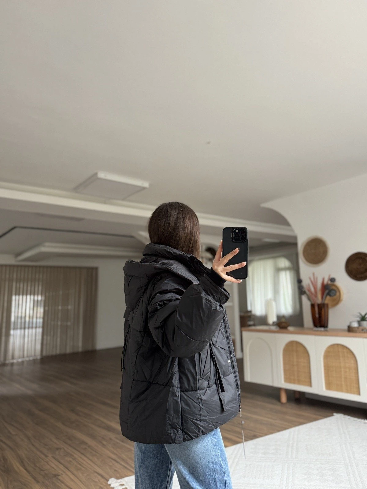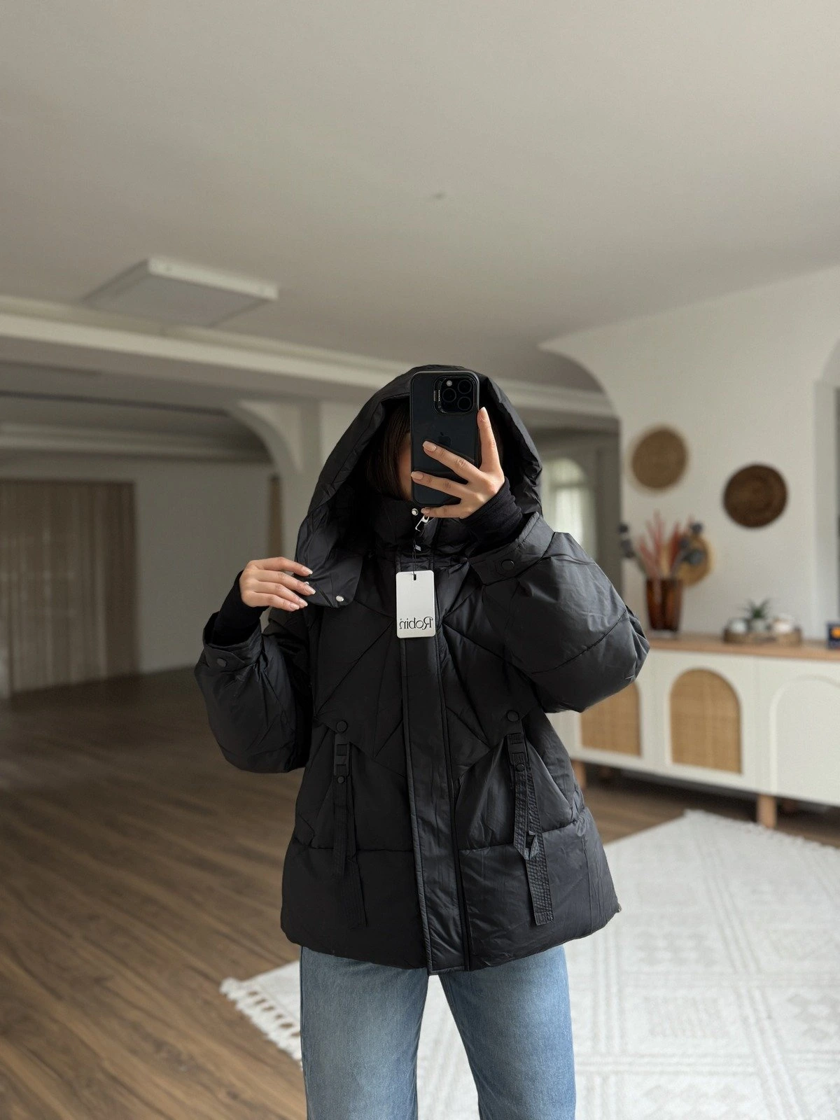 KAPUŞONU ÇIKARİLABİLİR DİKİŞ DETAY DOLGULU MONT – SİYAH