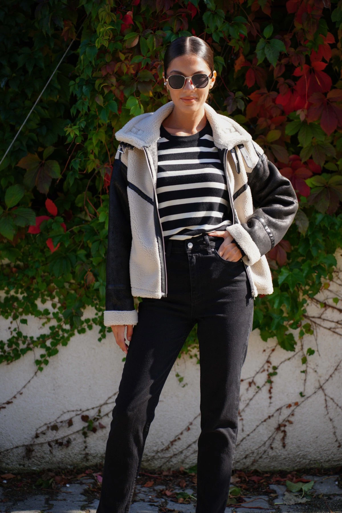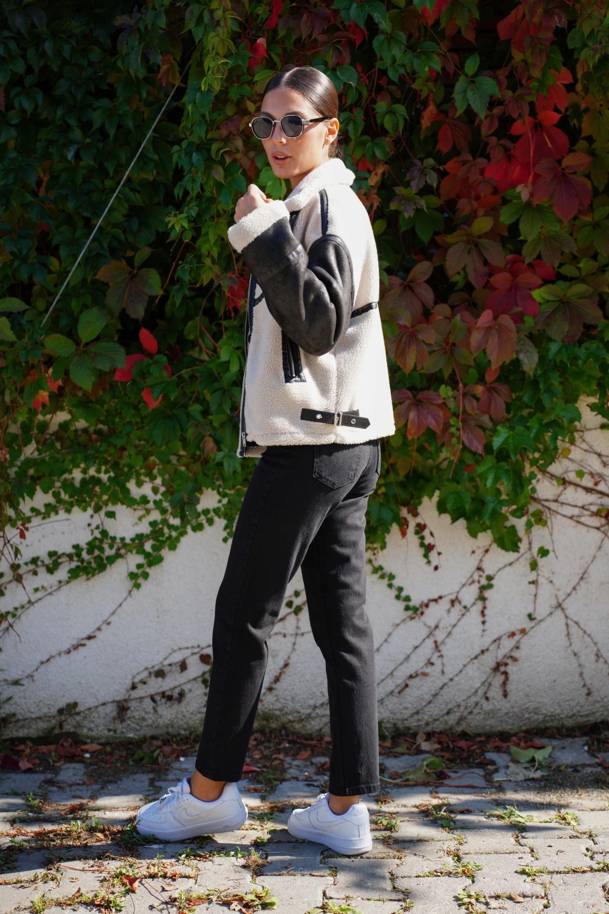 KOL VE ŞERİT DERİ DETAY PELUŞ MONT – SİYAH