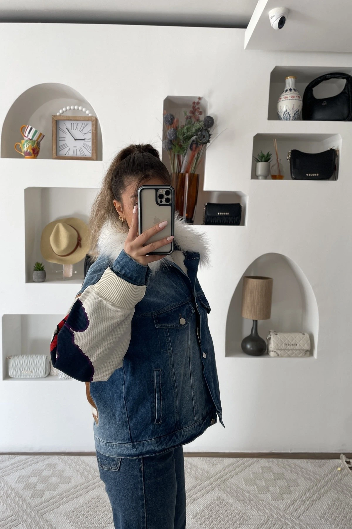 KÜRK YAKA ÇIKARILABİLEN İÇ PELUŞ JEAN PARÇALI MONT - TAŞ-LACİVERT
