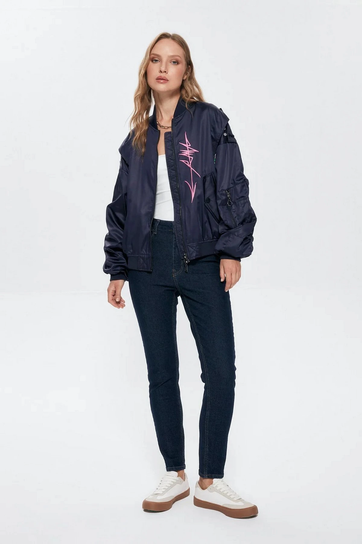 ÖN ARKA RENKLİ NAKIŞ KOL BÜZGÜ MONT – LACİVERT