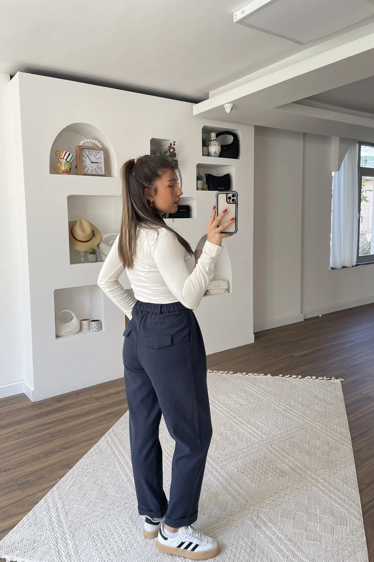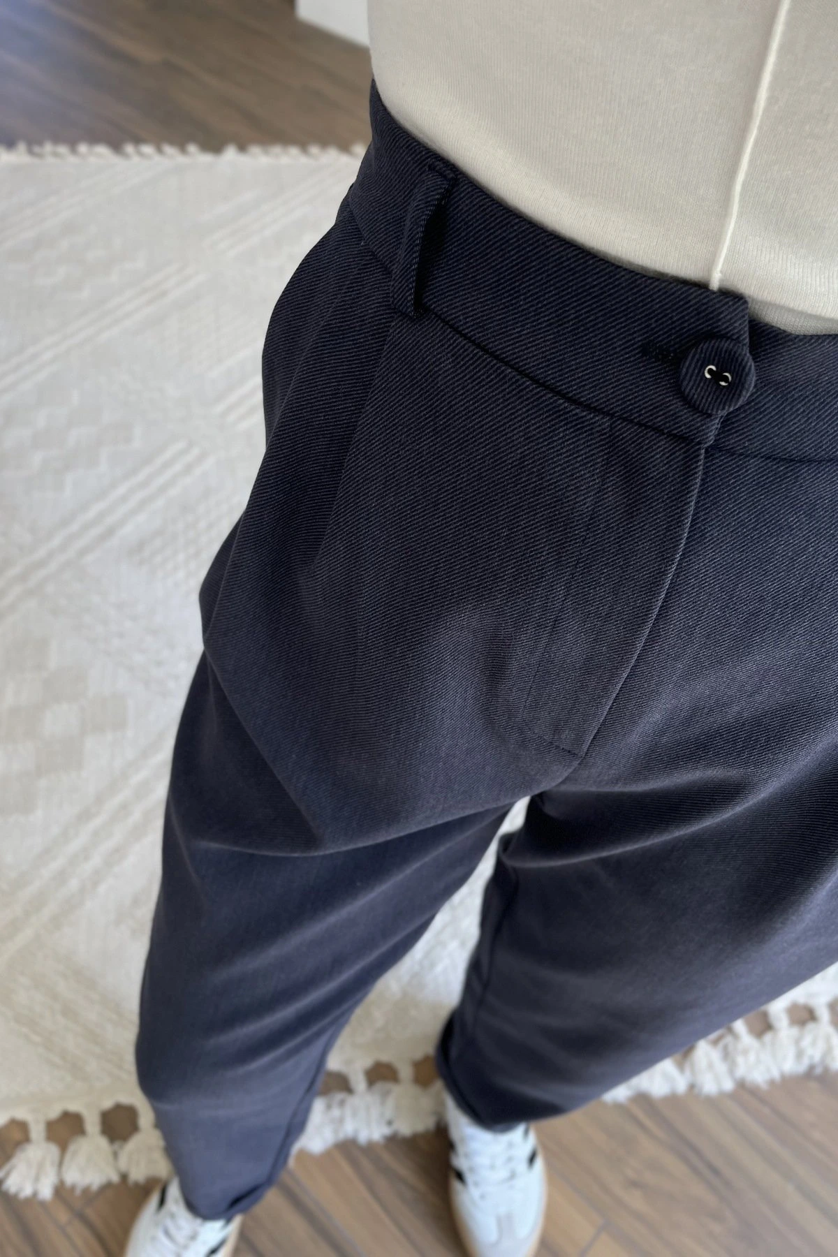 ARKA BEL LASTİK DUBLE PAÇA PAMUK TENCEL PANTOLON – LACİVERT