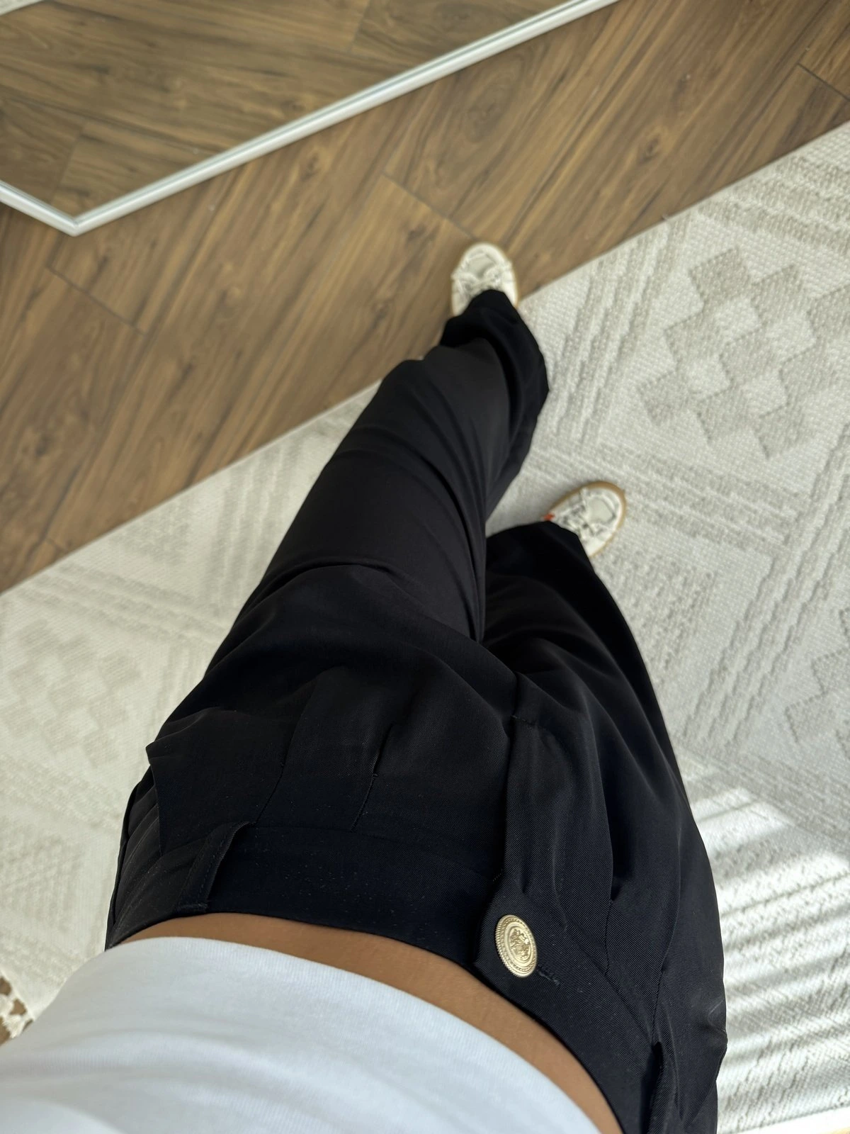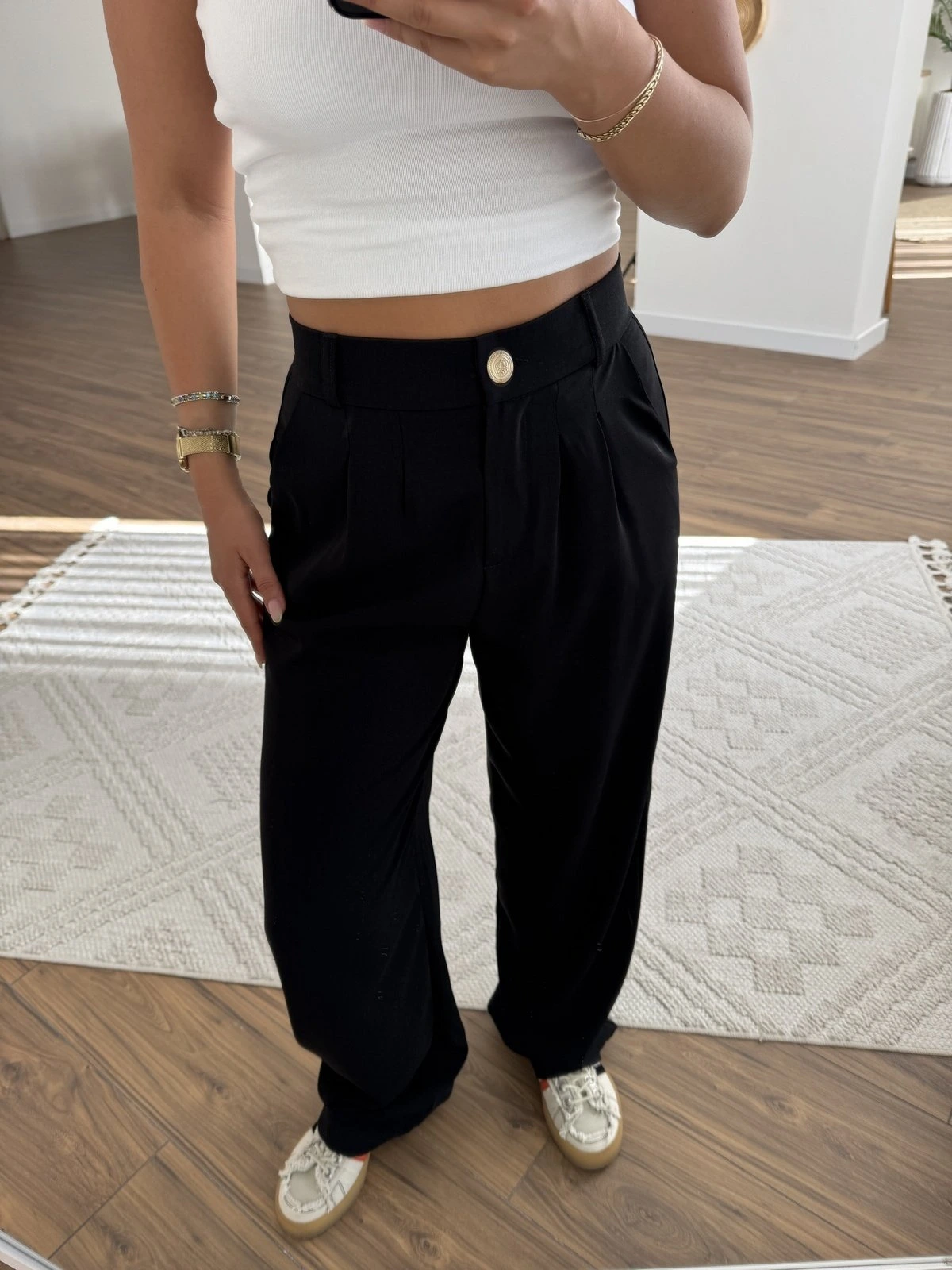 ARKA BEL LASTİK TİRİL PALAZZO PANTOLON – SİYAH