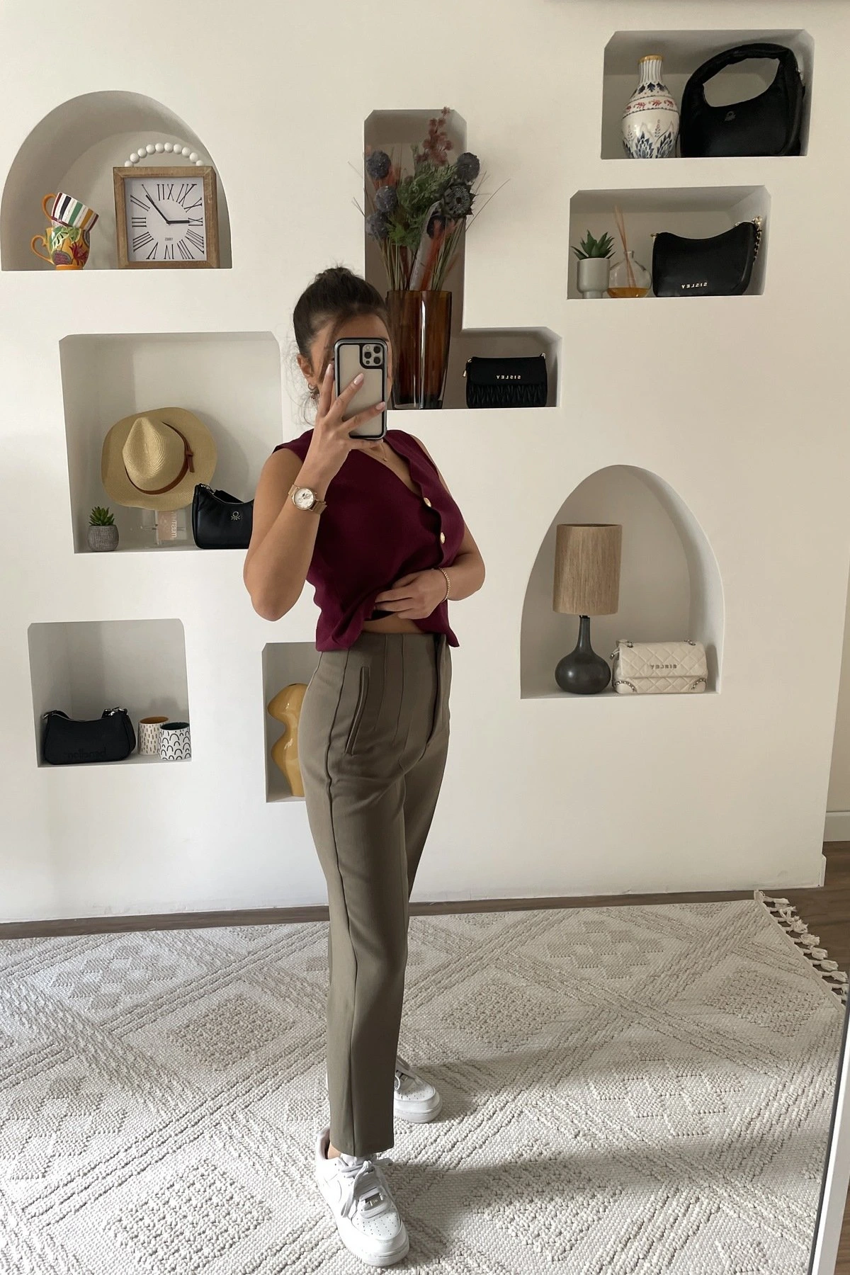 ARKA BEL V PENSLİ HAVUÇ LİKRALI PANTOLON – HAKİ