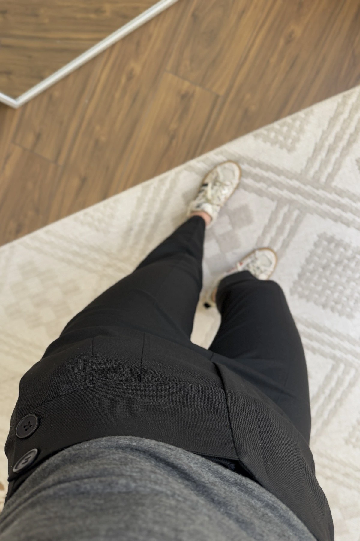 ARKA BEL V YAN DÜĞME DETAY VİSKON HAVUÇ PANTOLON – SİYAH