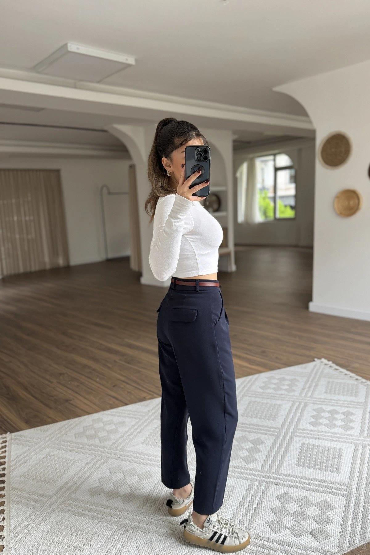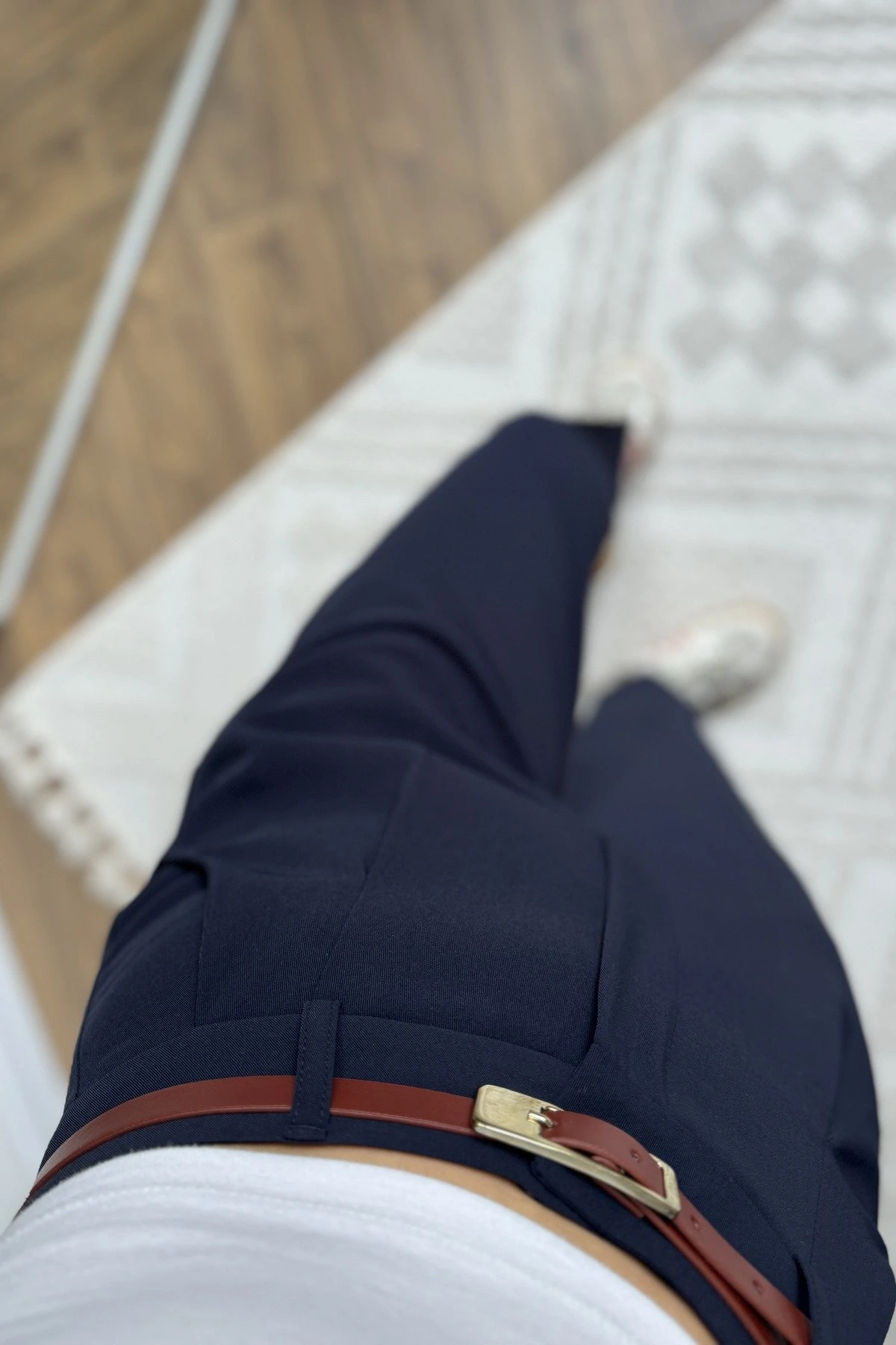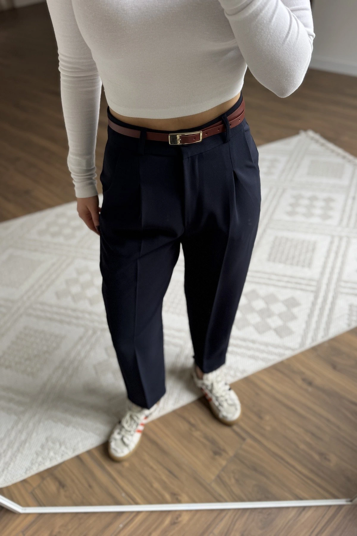 ARKA KAPAK CEP KEMERLİ TİRİL KUMAŞ PANTOLON – LACİVERT