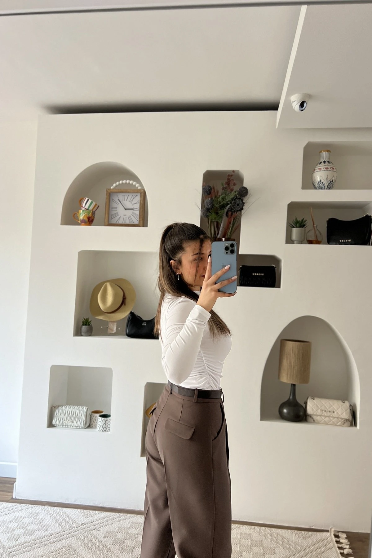 ARKA KAPAK CEP ÖN PİLİ KEMERLİ LİKRALI PANTOLON – KAHVE