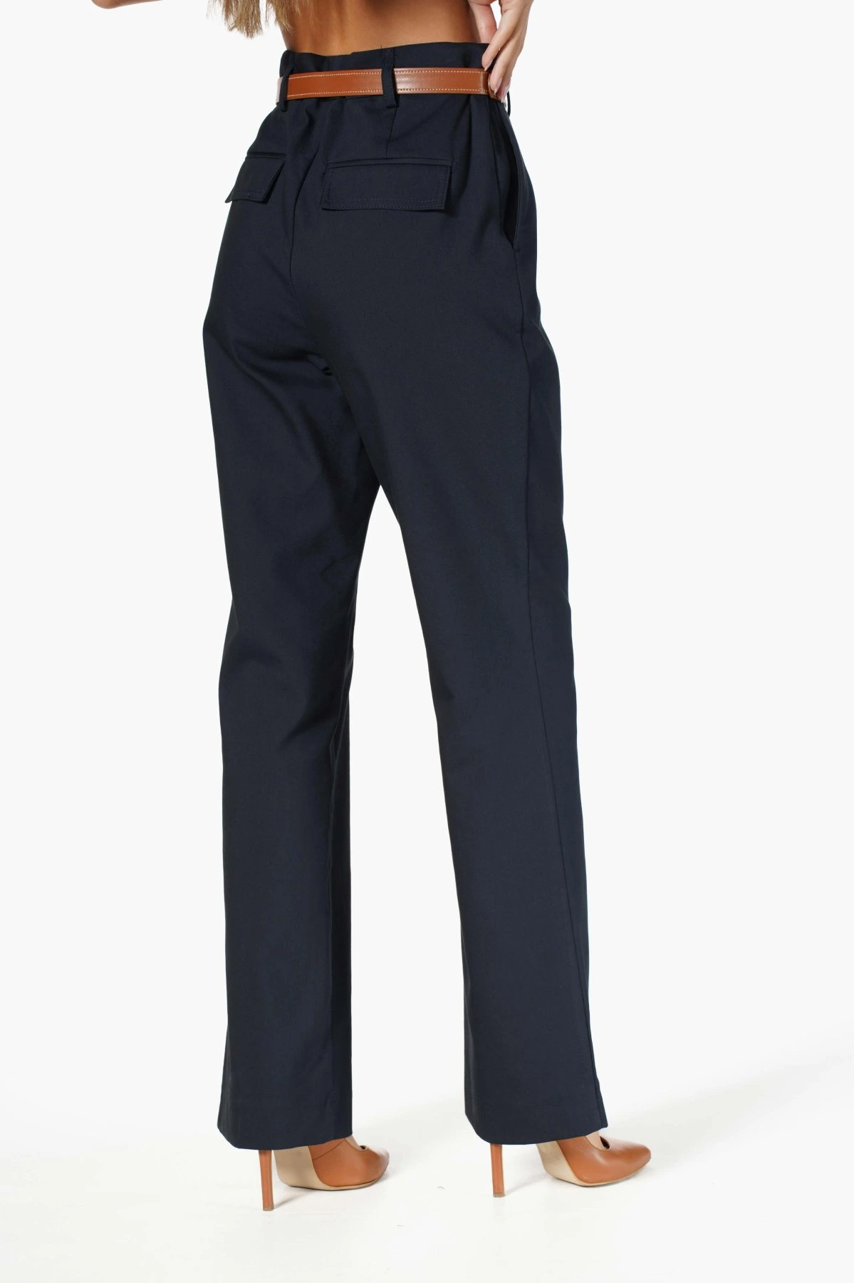 ARKA KAPAK VE YAN CEPLİ KEMERLİ PANTOLON – LACİVERT