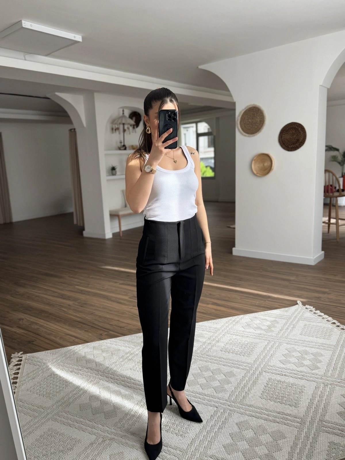 ARKA V PENSLİ ZR MODEL KUMAŞ VİSKON PANTOLON – SİYAH