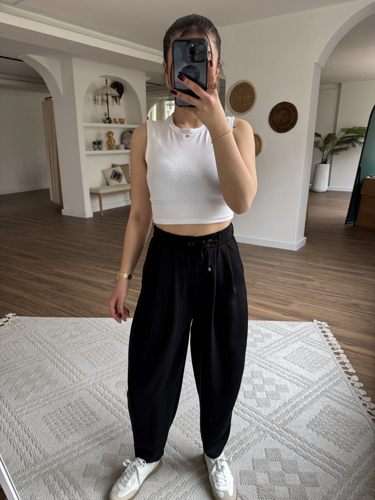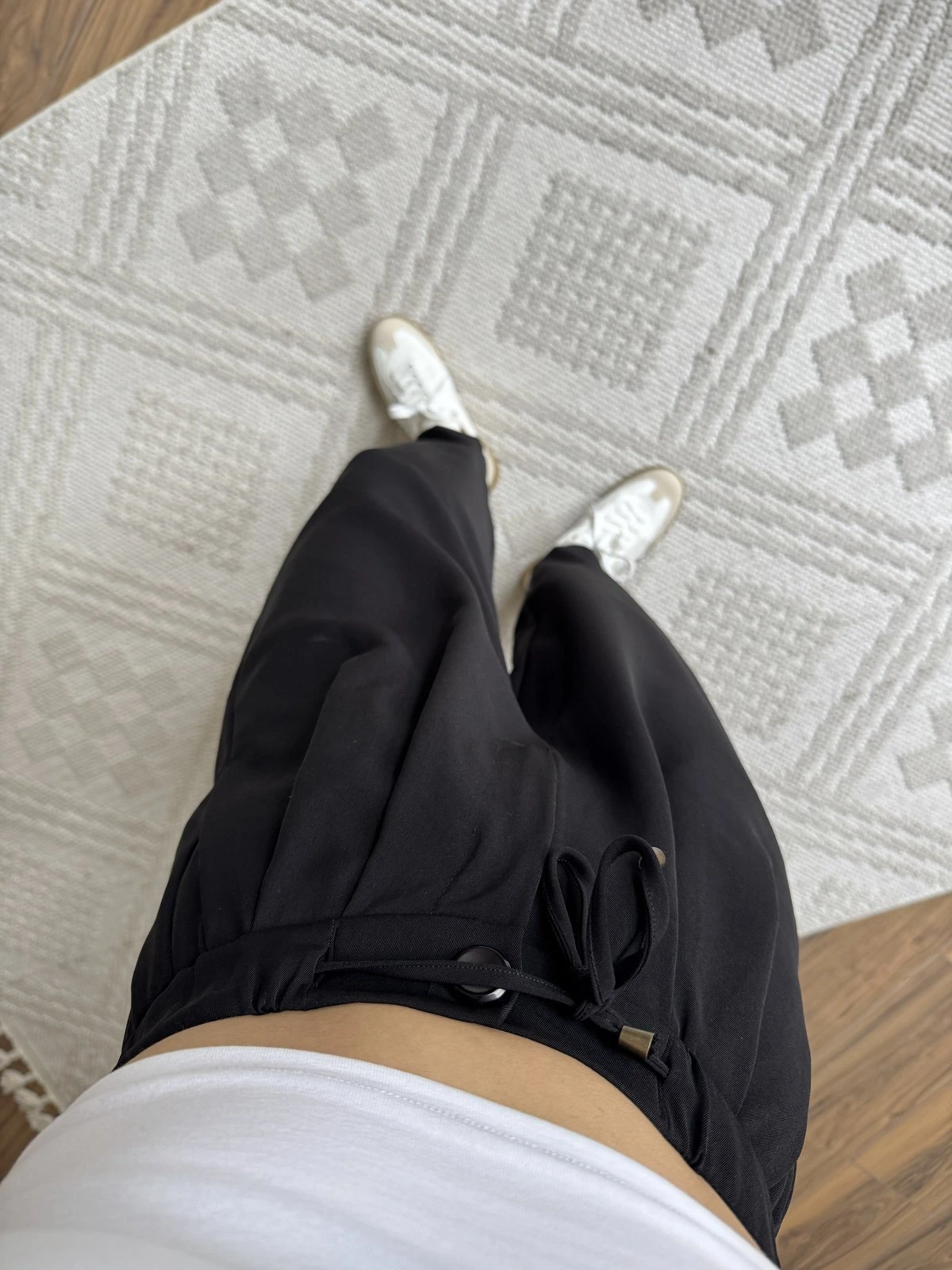 BEL BAĞ LASTİK PİLELİ TİRİL PANTOLON – SİYAH