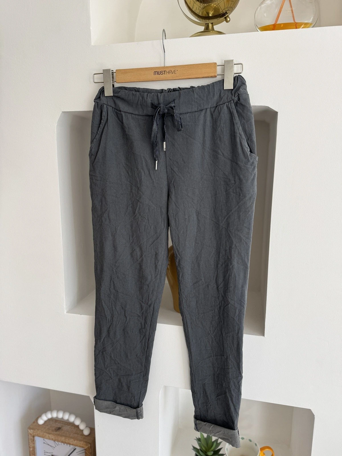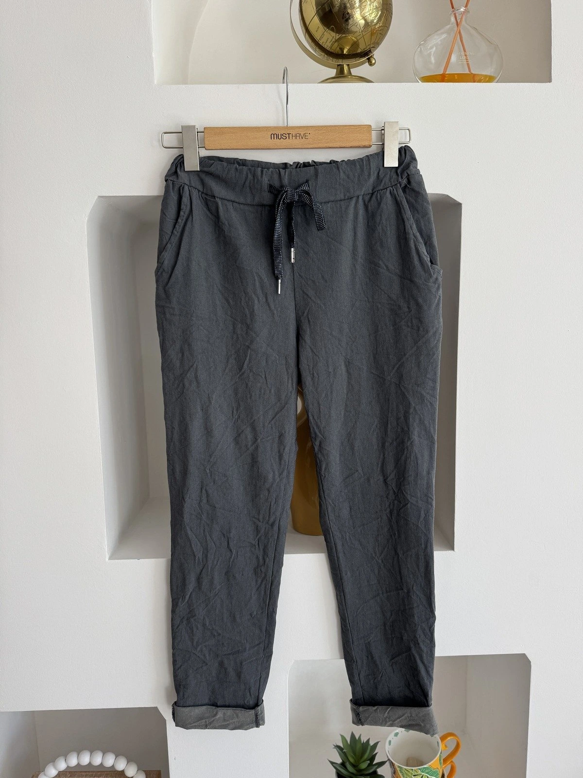 BEL BAĞCIKLI LİKRALI VİSKON PANTOLON – ANTRASİT