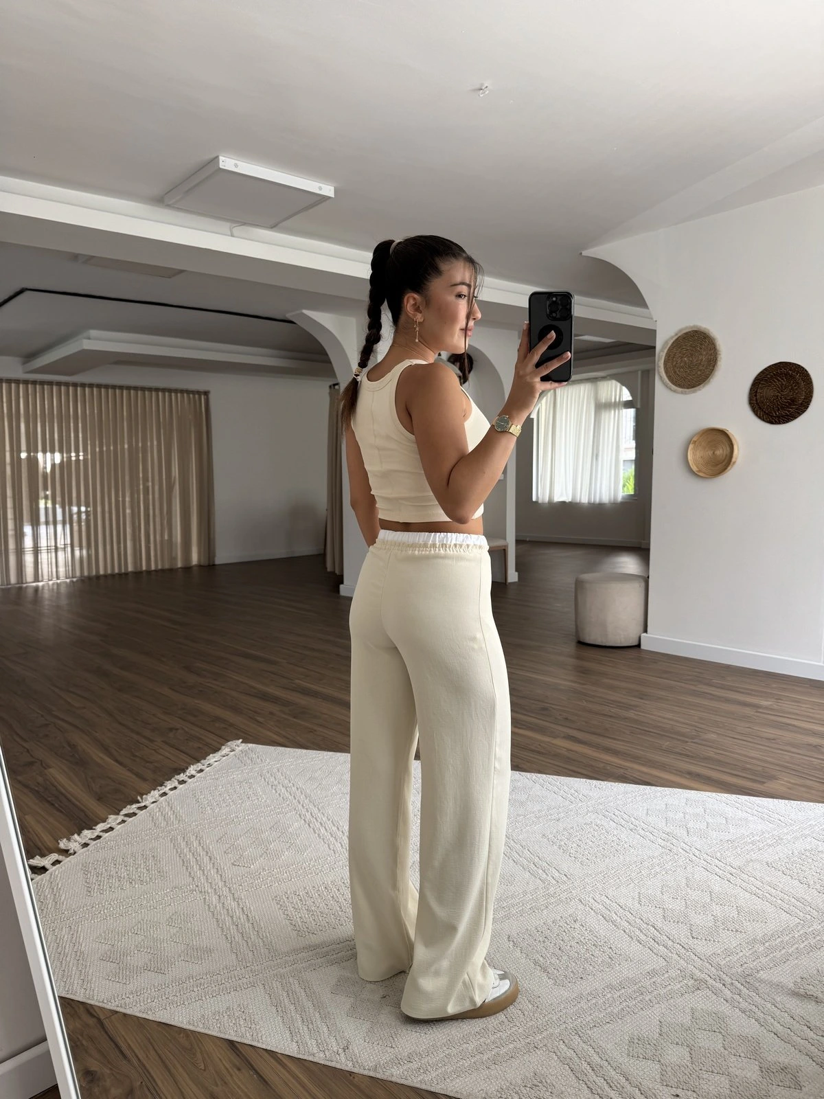 BEL BANTLI WİDELEG PANTOLON – KREM