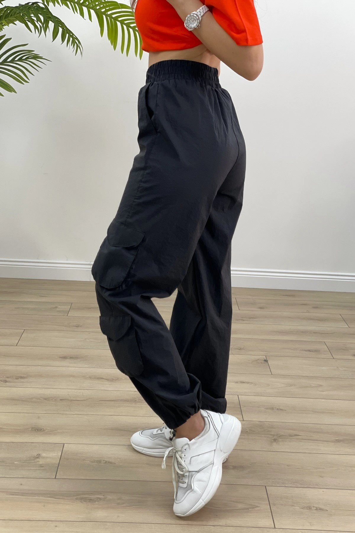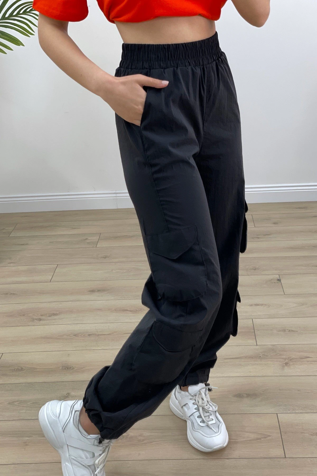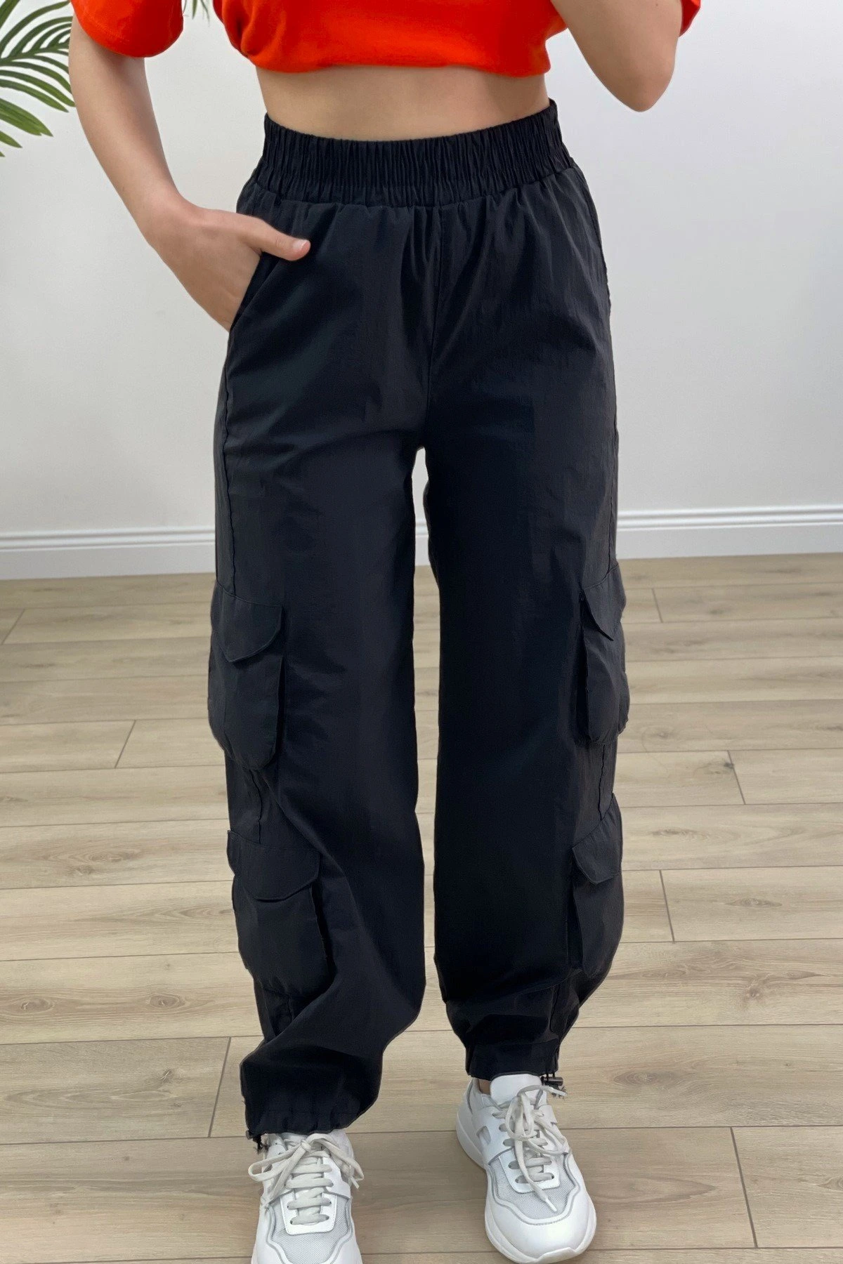 BEL BİLEK LASTİK ÇOK CEPLİ PARAŞÜT PANTOLON – SİYAH