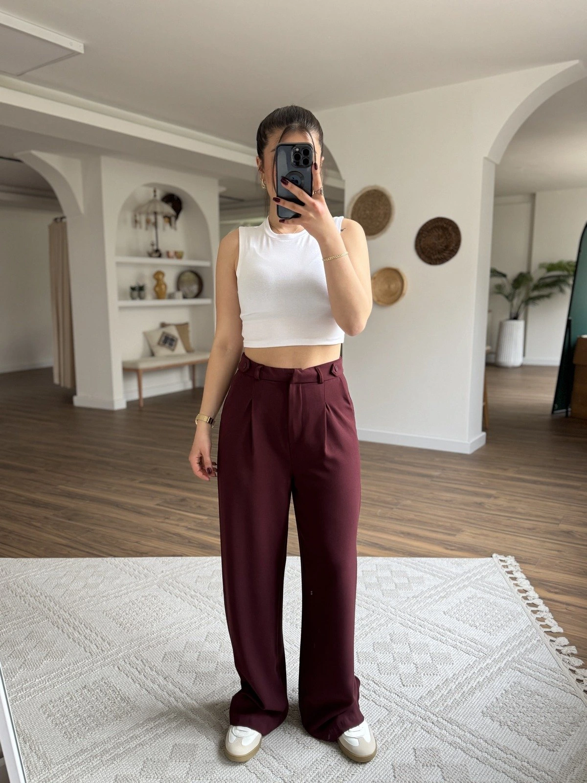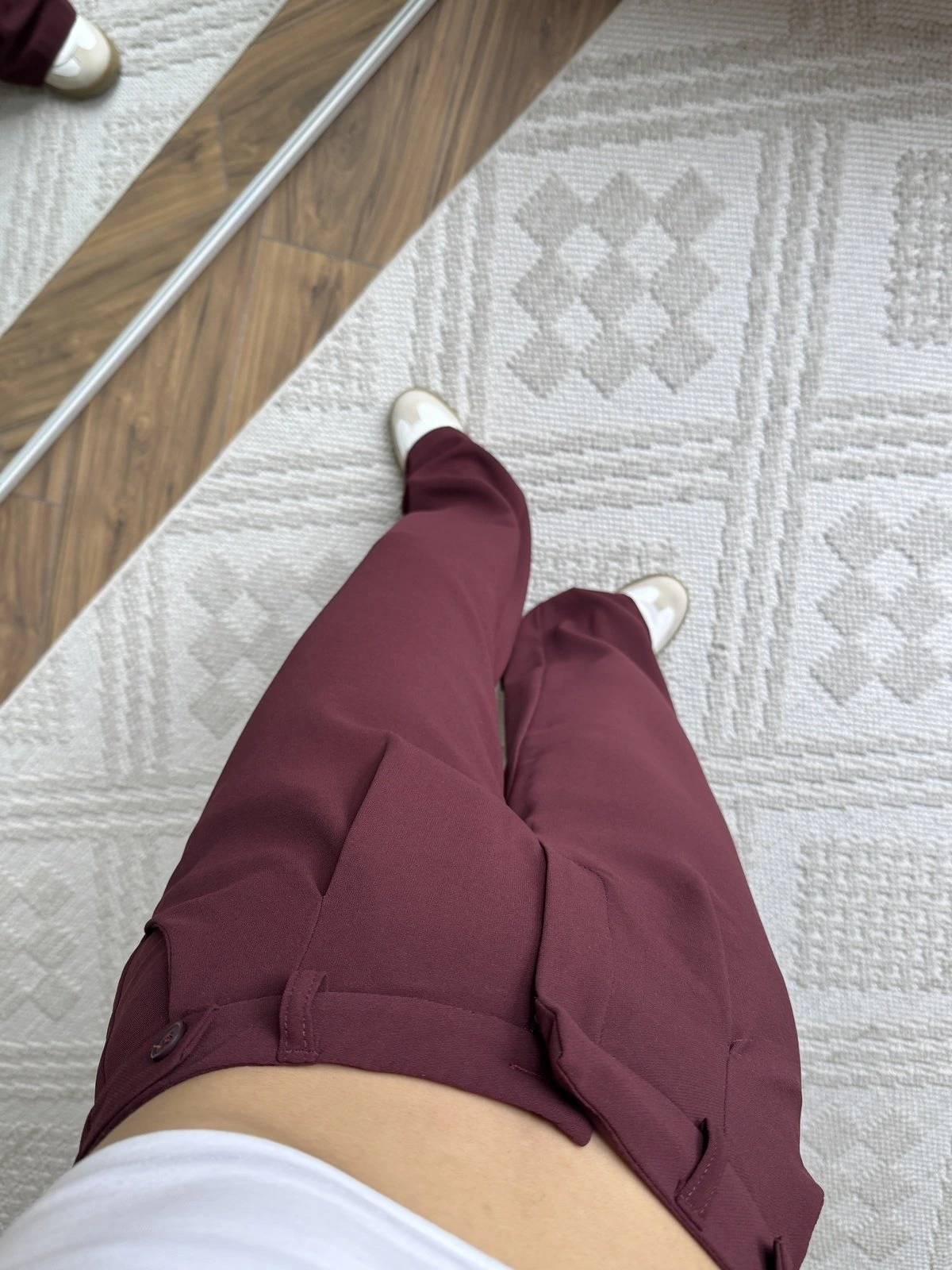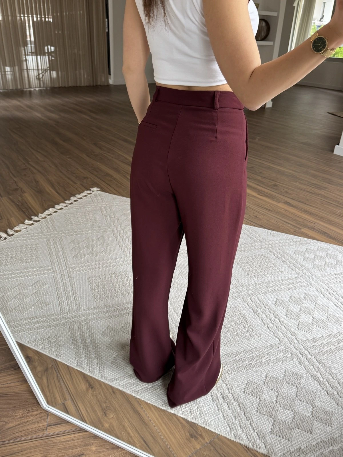 BEL BRİT DÜĞME DETAY PALAZZO KUMAŞ PANTOLON – BORDO