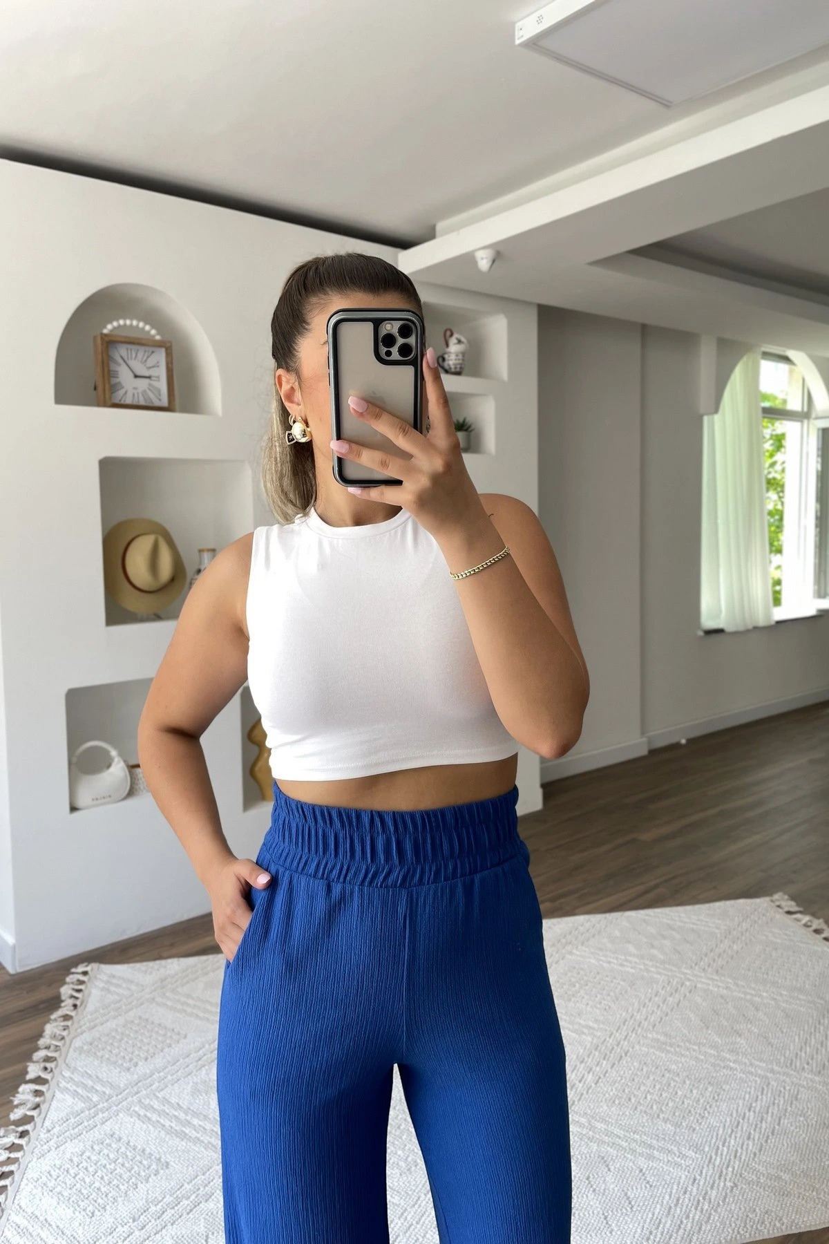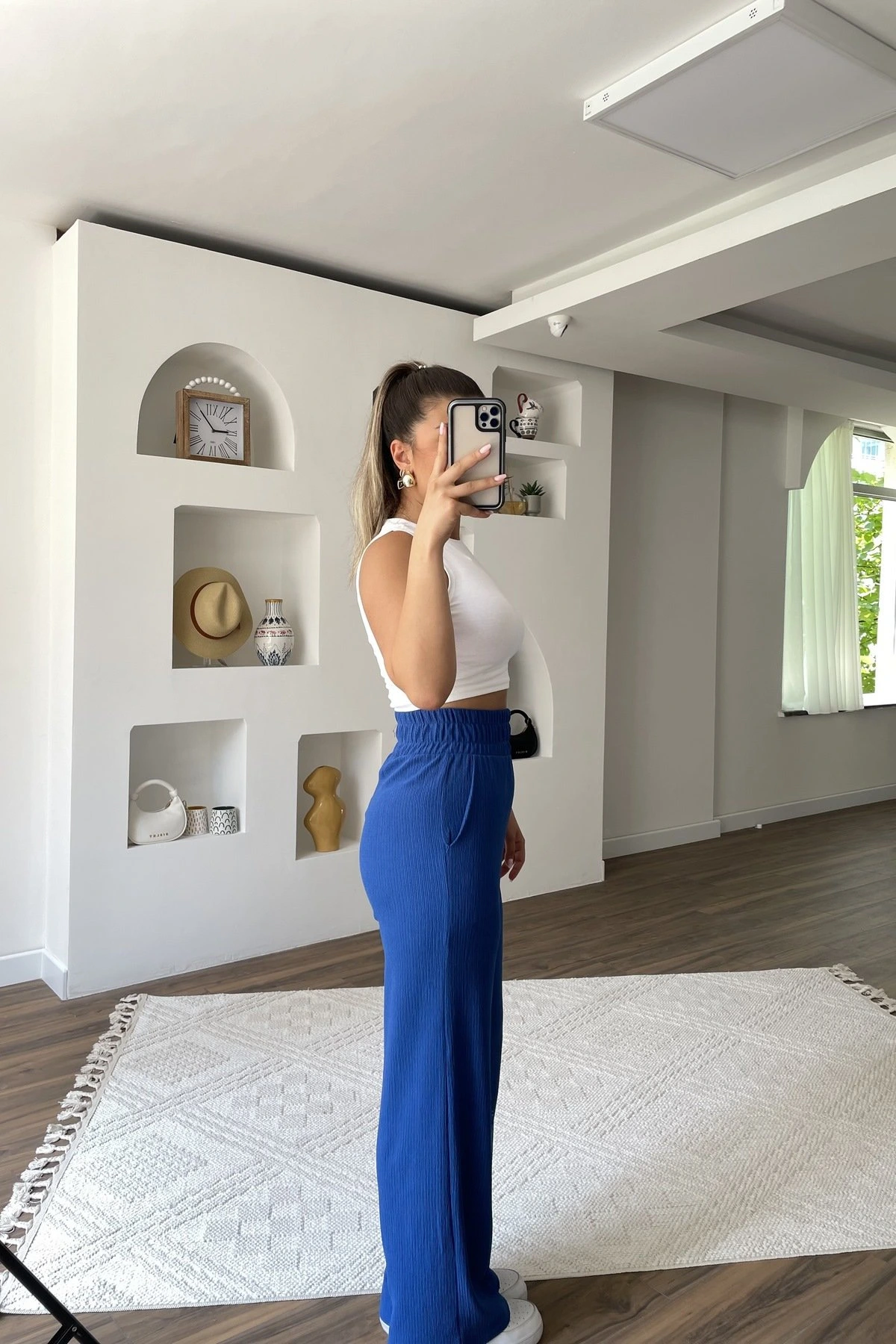 BEL LASTİK BÜRÜMCÜK CEPLİ BOL PAÇA PANTOLON – İNDİGO