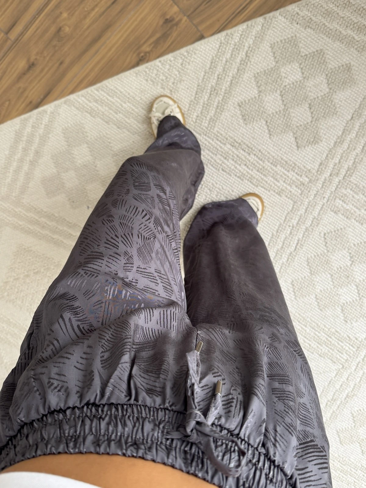 BEL LASTİK CEPLİ DOKU DESEN VİSKON RAHAT PANTOLON – ANTRASİT