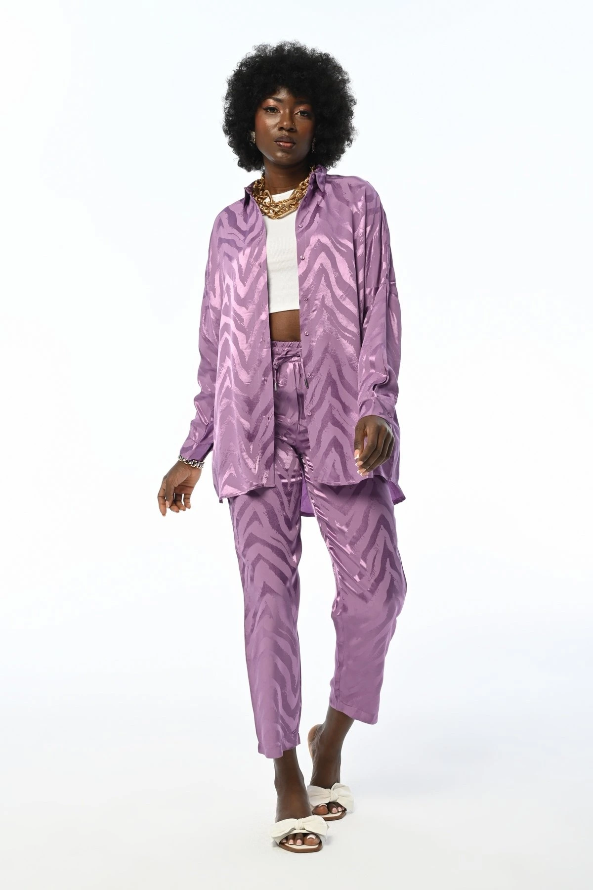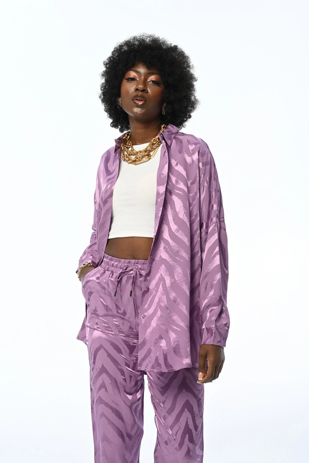 KENDİNDEN DESENLİ SALAŞ SATEN VİSKON GÖMLEK - MOR