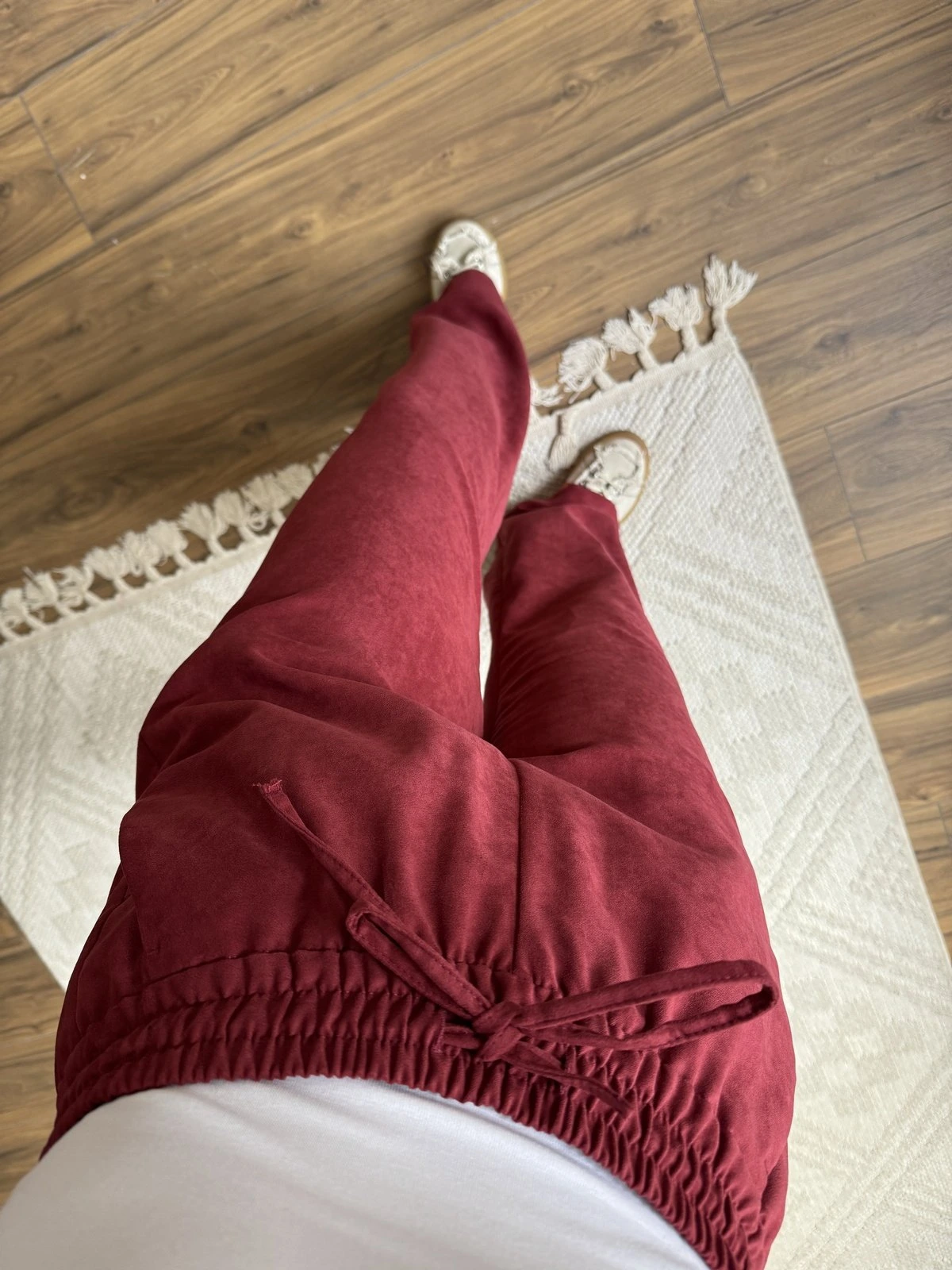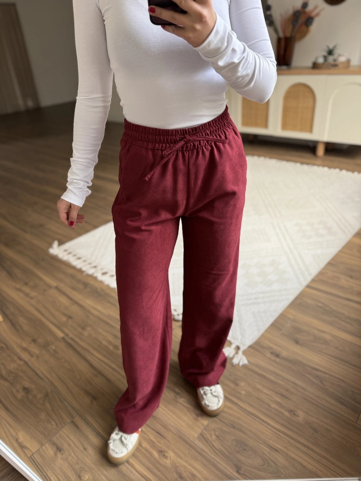BEL LASTİK CEPLİ SÜET VİSKON RAHAT PANTOLON – BORDO