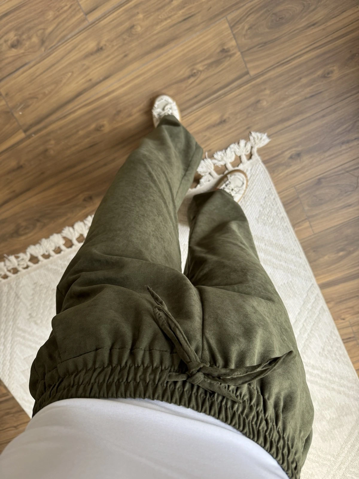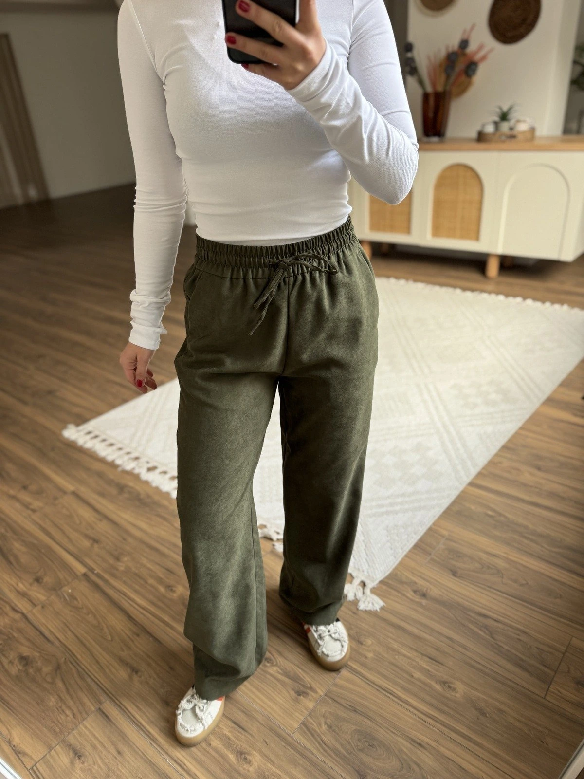 BEL LASTİK CEPLİ SÜET VİSKON RAHAT PANTOLON – ÇAĞLA YEŞİLİ
