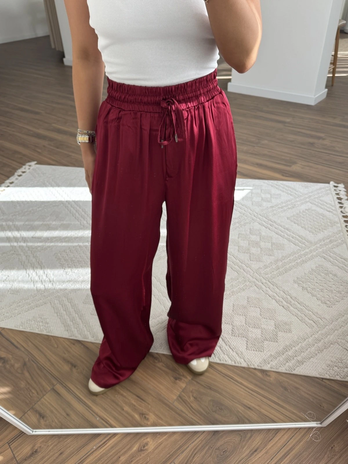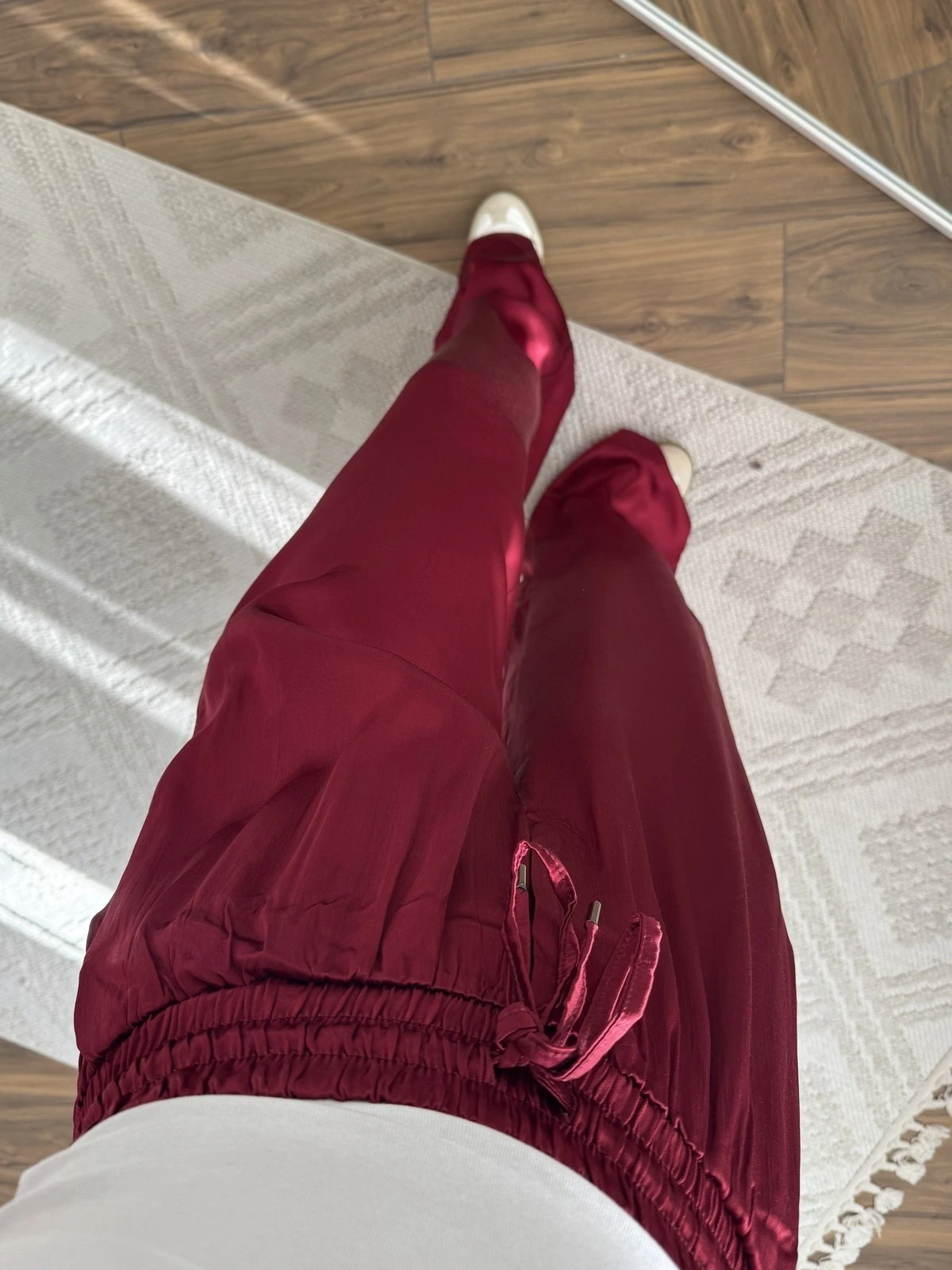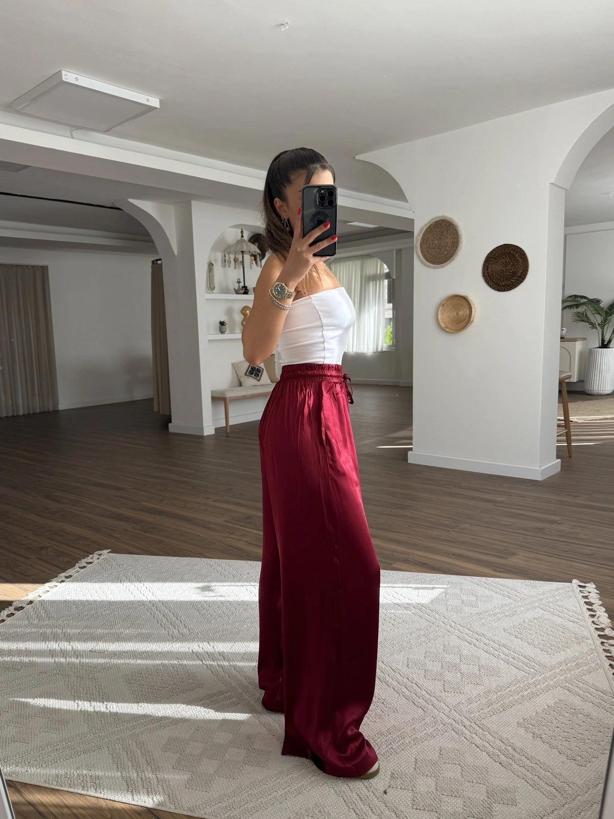 BEL LASTİK CEPLİ VİSKON RAHAT PANTOLON – BORDO