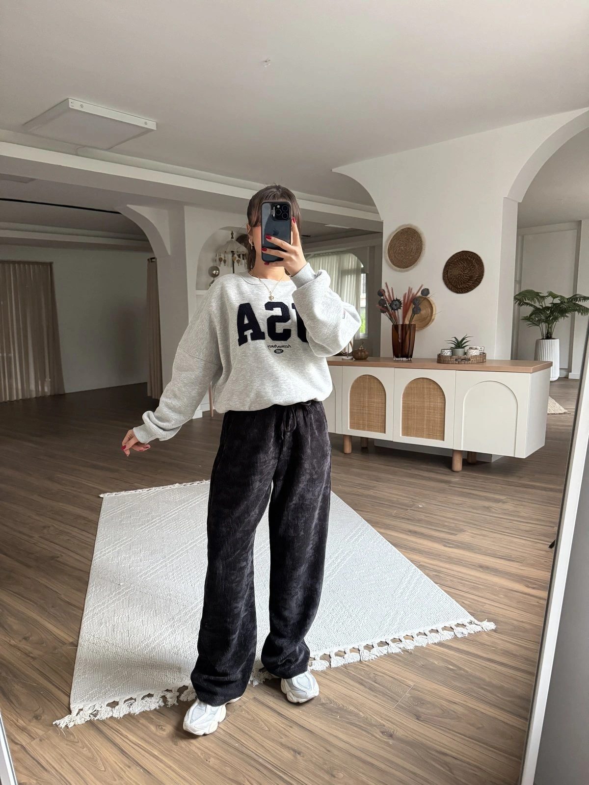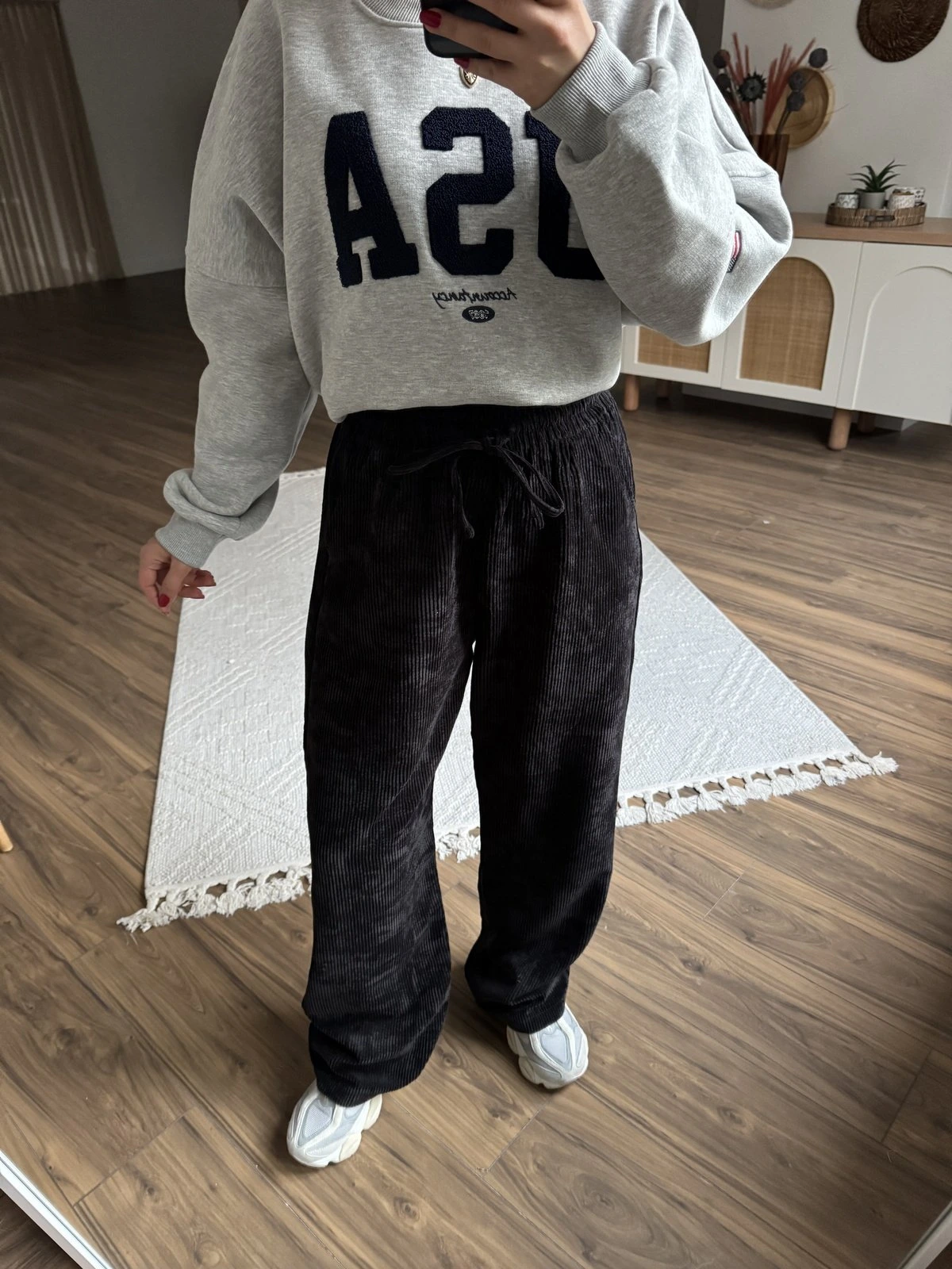 BEL LASTİK FİTİLLİ KADİFE CEPLİ PANTOLON – SİYAH