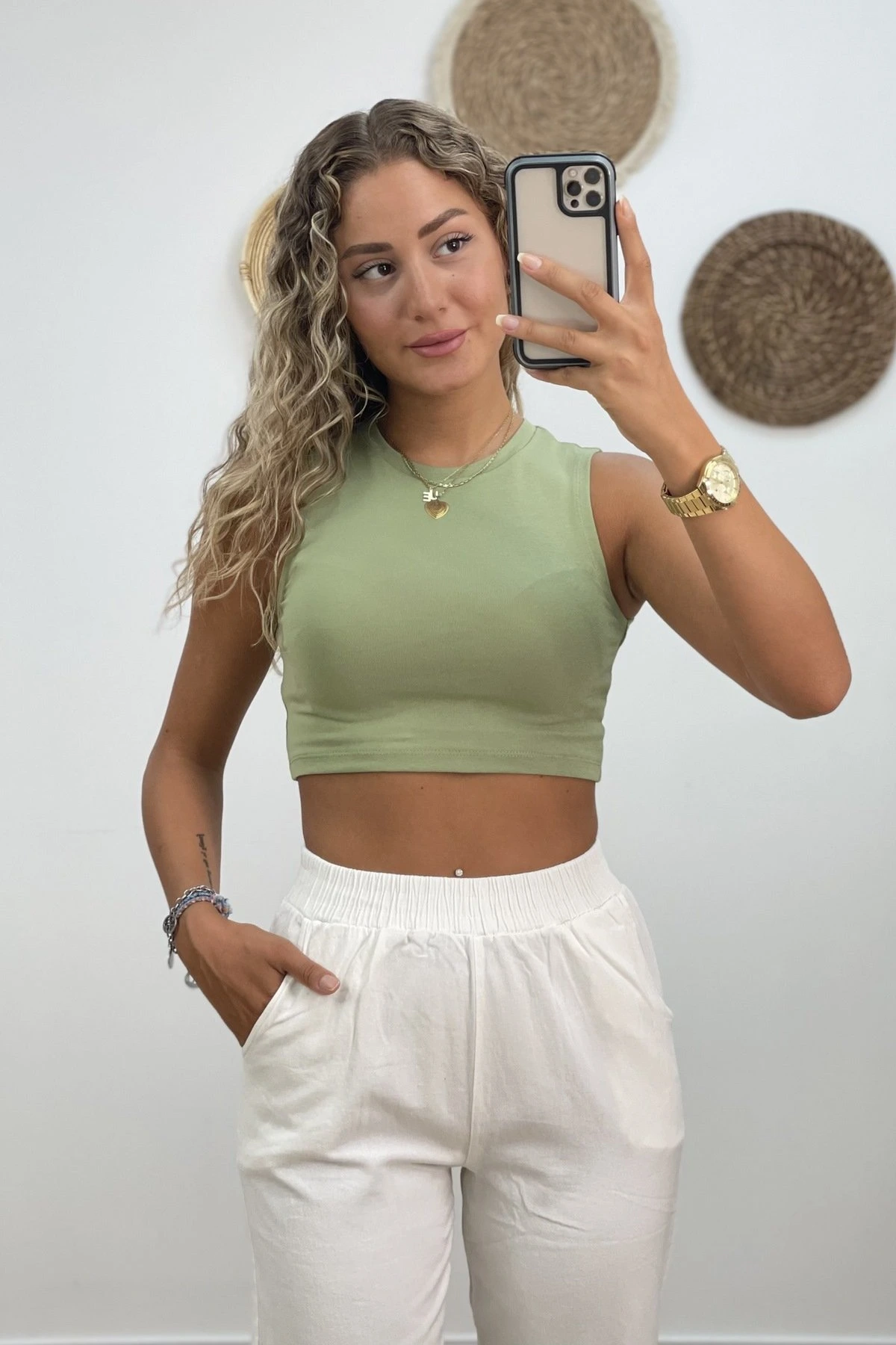 BEL LASTİKLİ CEPLİ GABARDİN PANTOLON – EKRU