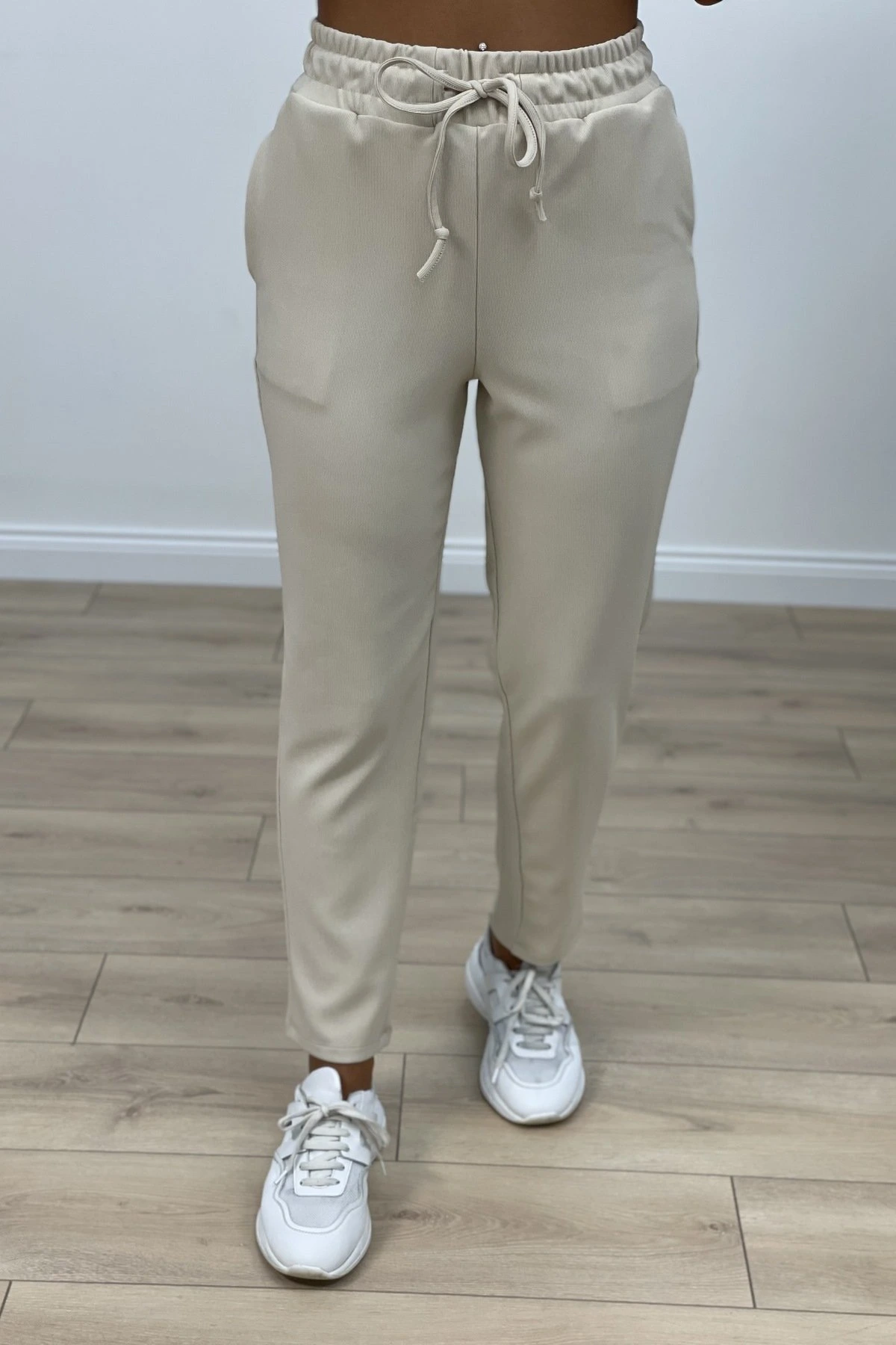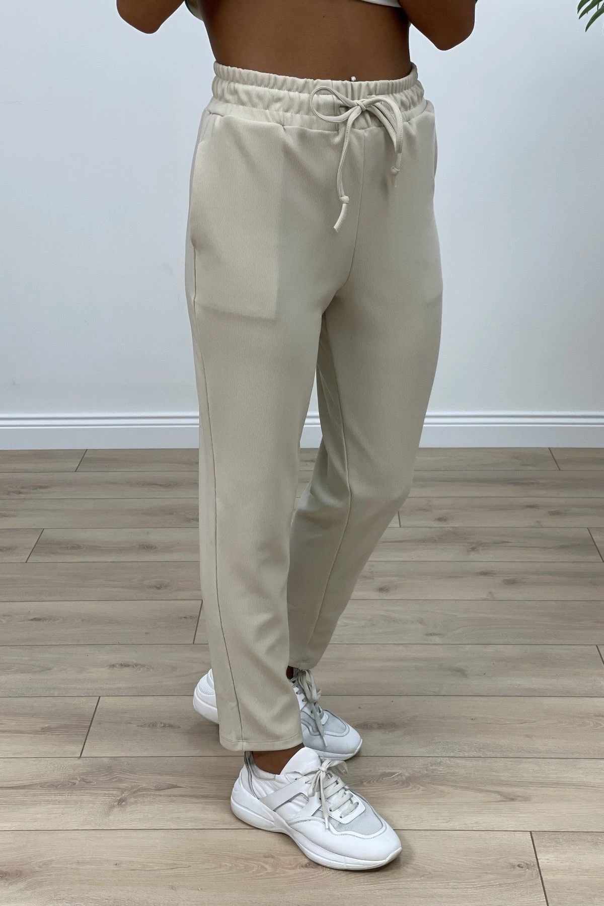 BEL LASTİKLİ FİTİLLİ PANTOLON – BEJ